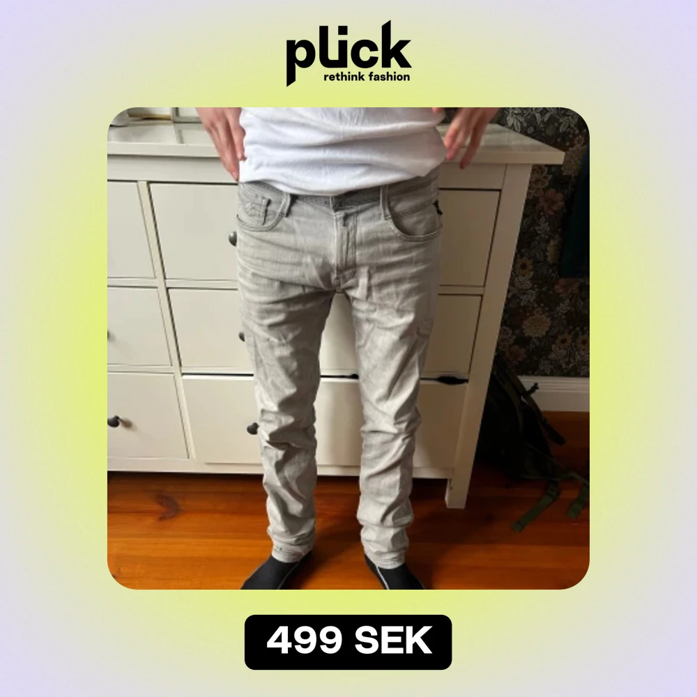 Superfina Replay jeans i färgen ljusgrå. Skick 9/10 inga defekter. Modellen är 180 cm lång och väger 65. Säljer de på grund av att jag inte har nån användning av de längre.