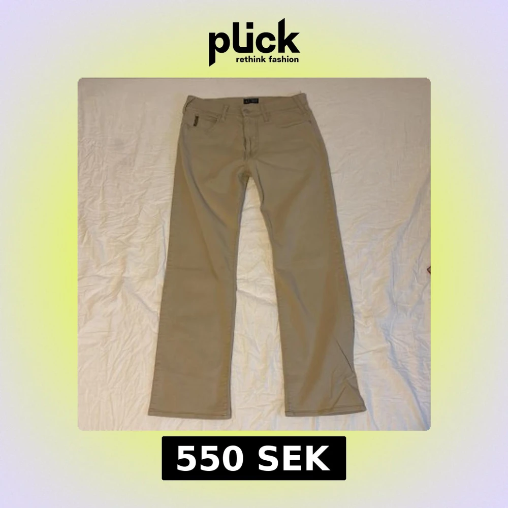 Snygga beige byxor från Armani Jeans med klassisk femficksdesign. Byxorna har raka ben och normal passform. Tillverkade i bomull med lite stretch för extra komfort. Perfekta för en clean och stilren look.