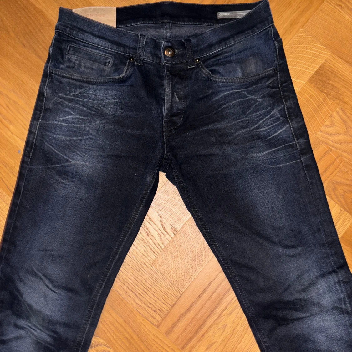 Säljer ett par snygga mörkblå/svarta jeans från dondup! 👖Storlek 31, modell George. Passar någon från 160-170! Mycket väl använda men fortfarande i bra skick! ✅Skriv till mig om du har några frågor! 👊🏼/Gustav