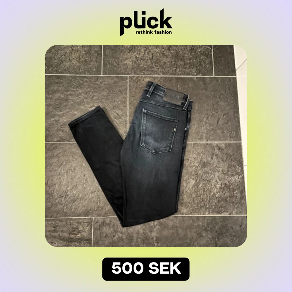 Ett par Replay Anbas jeans med en grymt skön passform och ett skönt par jeans. Dem är mörkblåa med en tvättad färg över låren då dem är i storlek 32 på längden och 34 på bredden över midjan. Ett absolut dröm par inom jeans!