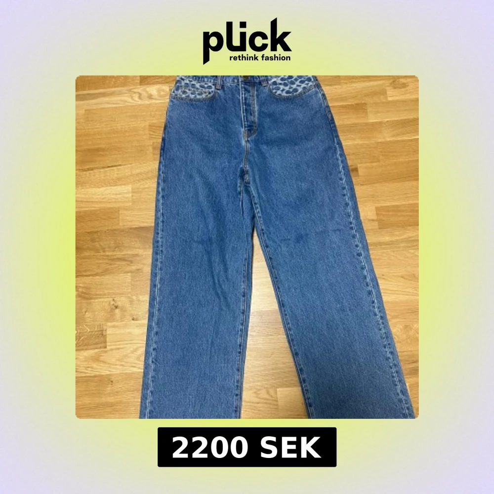 Säljer ett par blå jeansbyxor från Coach med unika fickor i blått mönster. Byxorna är baggy med klassisk femficksdesign. Perfekta för dig som vill ha något som sticker ut lite extra. Aldrig använda