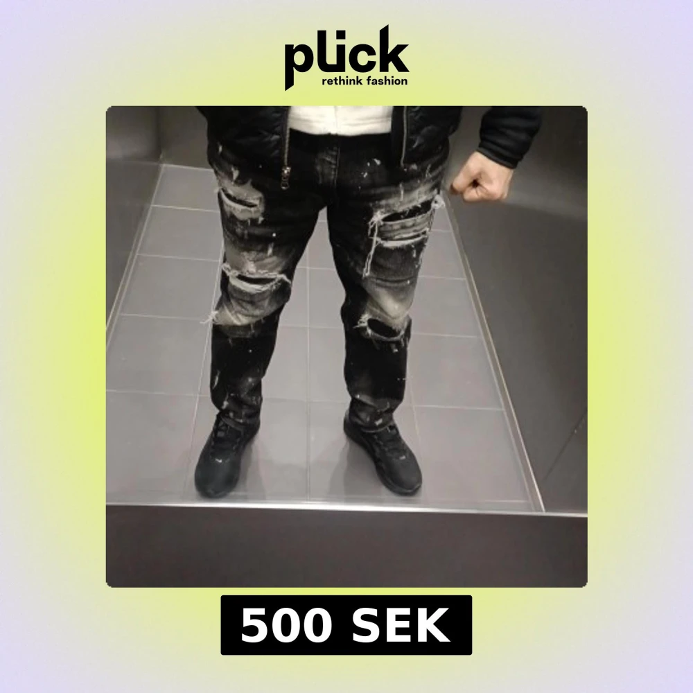 Svarta jeans från Supply & Demand med coola slitningar och färgstänk över hela byxorna. Modellen har raka ben och flera rejäla hål och trasiga detaljer på framsidan för en edgy streetstil. Jeansen har klassisk femficksdesign och är tillverkade i jeansmaterial. Storlek 32 sitter perfekt på mig använt dom i 2 månader helt och hållet rena o fräscha o fortfarande som nya . Säljes för 500