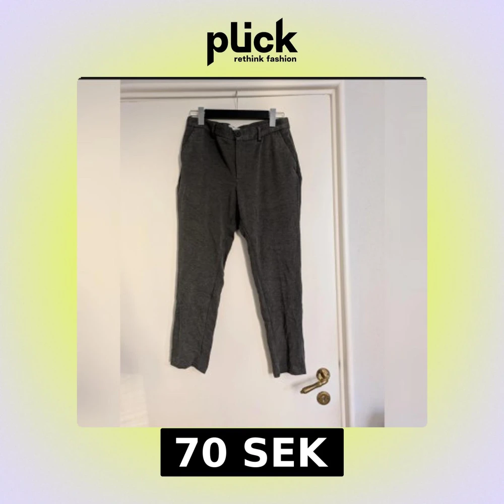 Snygga grå ankelbyxor i stretchigt material. Bälteshällor och knäppning fram. Byxorna är tillverkade i en mjuk blandning av viskos, polyester och elastan för en skön passform. Perfekta till en stilren look.