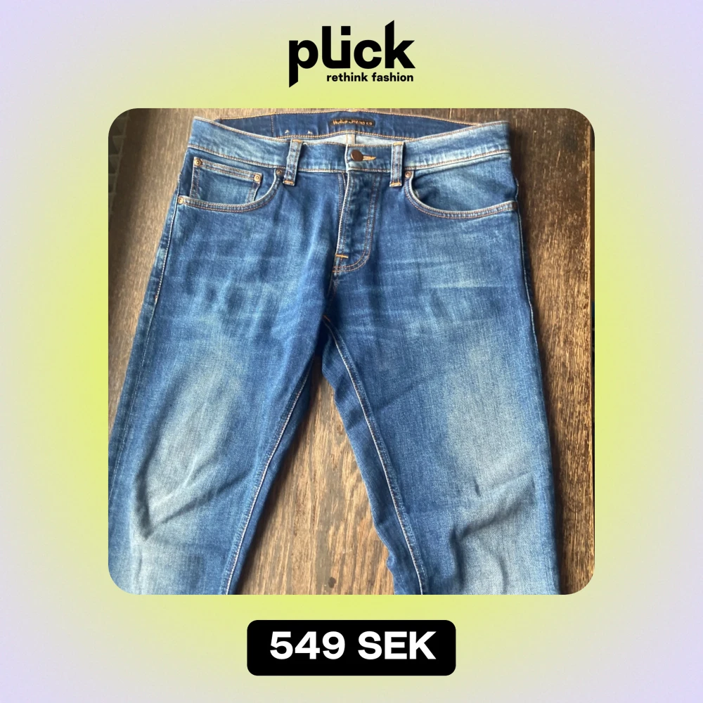 Size 32/32, slim fit. Har en mellanblå färg, på bilden ser de lite ljusare ut. Har använt dem ett antal gånger men de är nästan som nya.