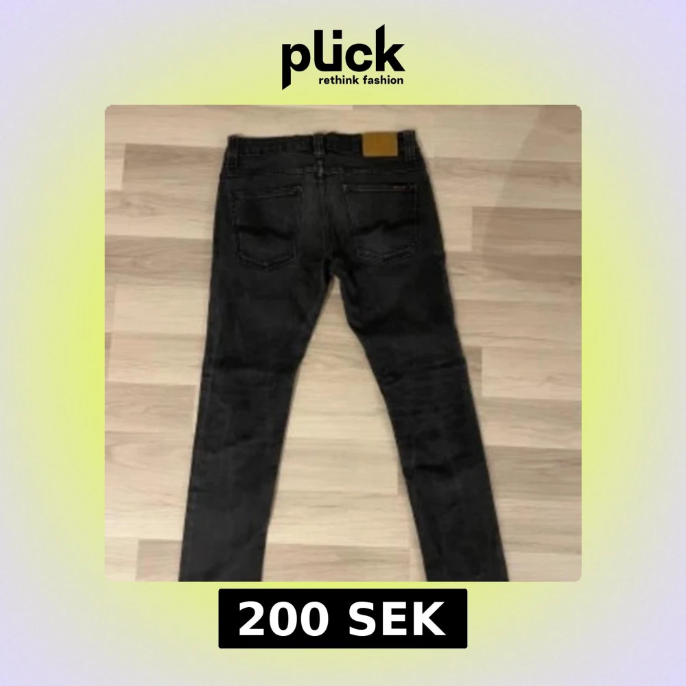 Snygga svarta jeans från Nudie Jeans med klassisk femficksdesign. De har en knappgylf och subtila orangea detaljer vid fickorna. Perfekta för en stilren look.