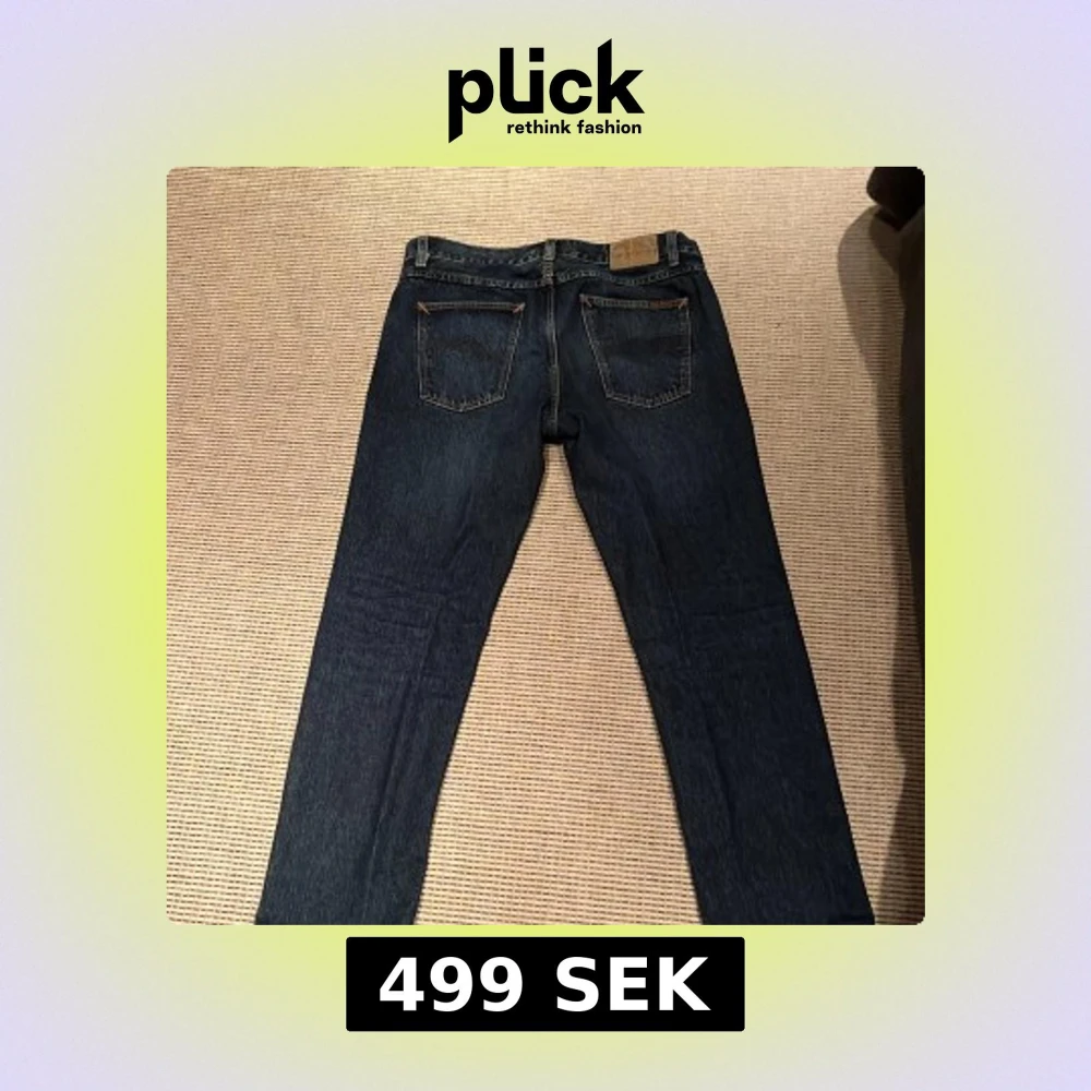 Snygga mörkblå jeans från Nudie Jeans. De har en normal passform och är asfeta. Perfekta för en clean och grich look. Nytt pris 1600, mitt pris 499 kr. Knappt använda.