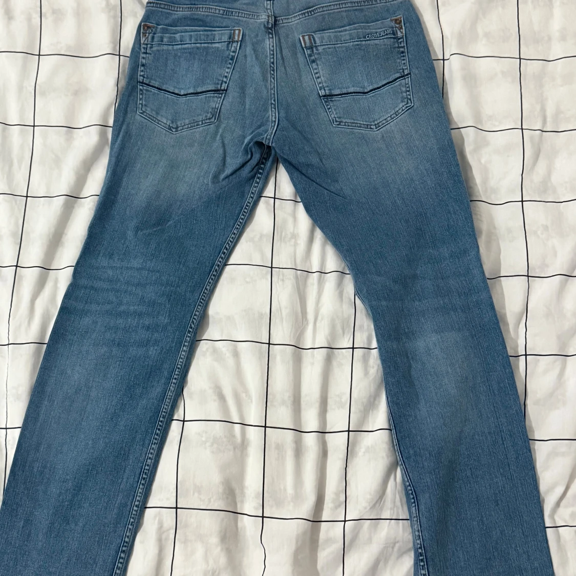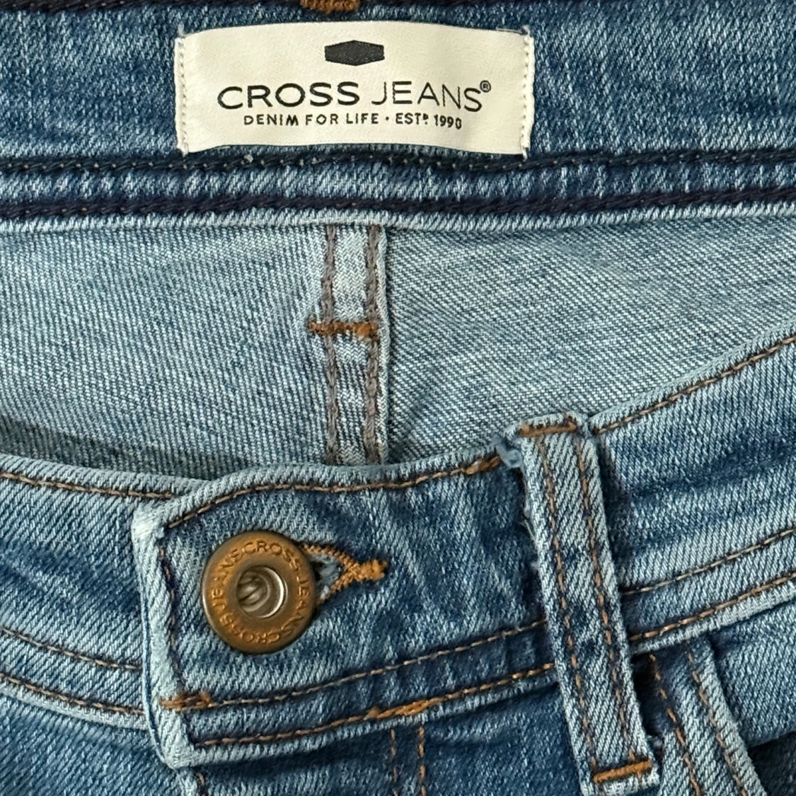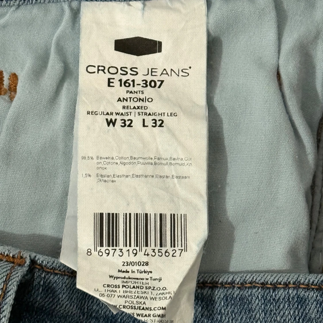 Säljer ett par blå jeans från Cross Jeans, modell Antonio. De har regular waist och raka ben, klassisk femficksdesign och knappstängning. Materialet är bomull med lite elastan för extra komfort. Perfekt passform för dig som gillar avslappnad stil.
