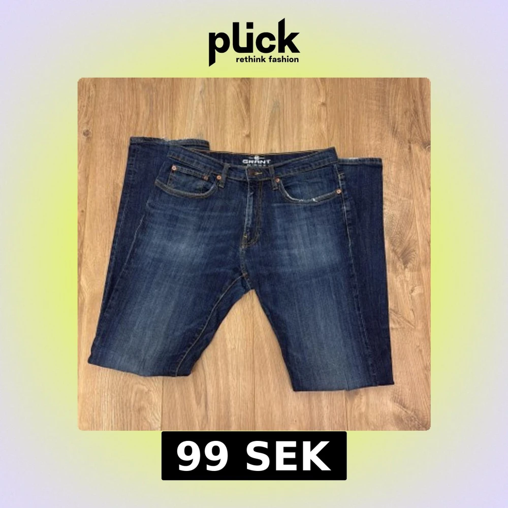 Snygga mörkblå jeans från Grant, modell 405, med klassisk femficksdesign och kontrastsömmar. Jeansen har en rak passform och är tillverkade i slitstarkt denimtyg. Perfekta för en avslappnad och stilren look.