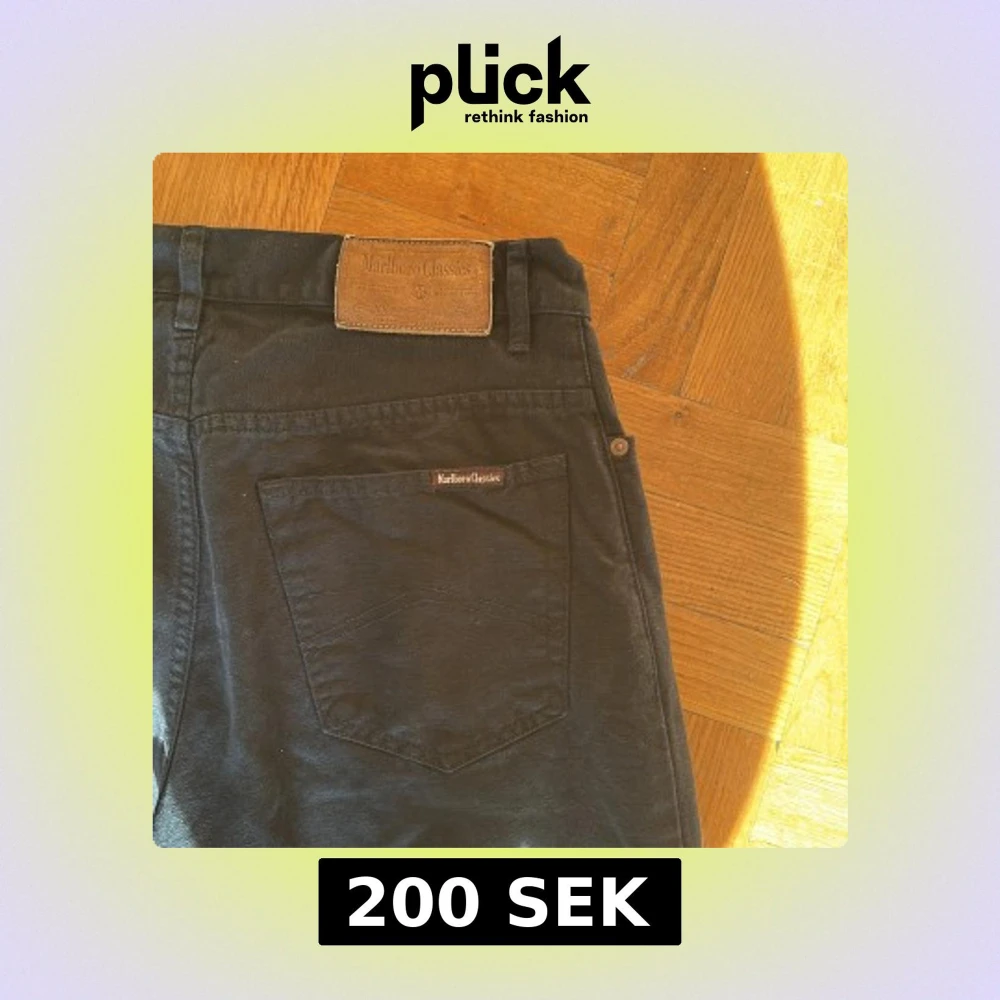 Svarta jeans från Marlboro Classics med klassisk femficksdesign och raka ben. Byxorna har snygga detaljer som metallknapp och läderpatch bak i midjan. Materialet är robust bomull med en skön känsla och passformen är normal. Perfekta för en stilren och avslappnad look. Högra bakbenet har tecken av användning.