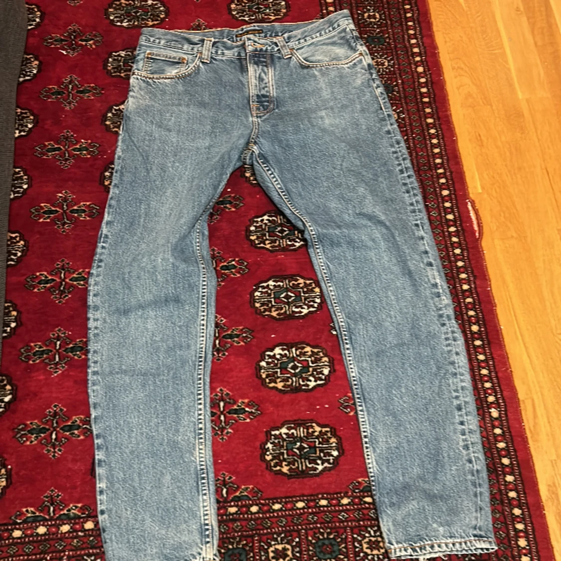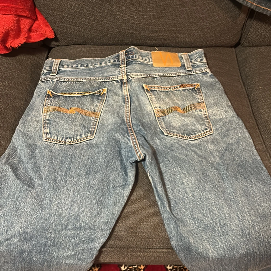 Nudie jeans bra passform inte så slitna men är ganska använda vid snabb affär går priset att diskutera