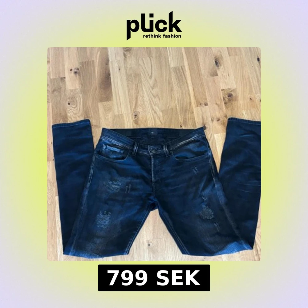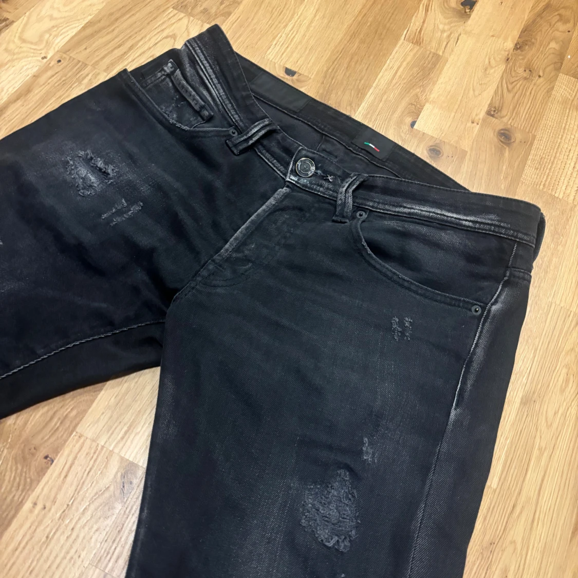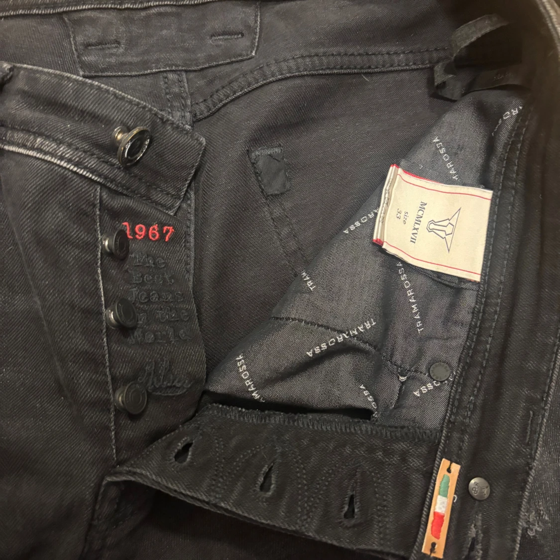 Svara tramarossa jeans i w33 med skit snygga slitningar. Byxorna är gjorda i Italien och har sjukt snygga detaljer på insida och utsida! Kom med frågor!