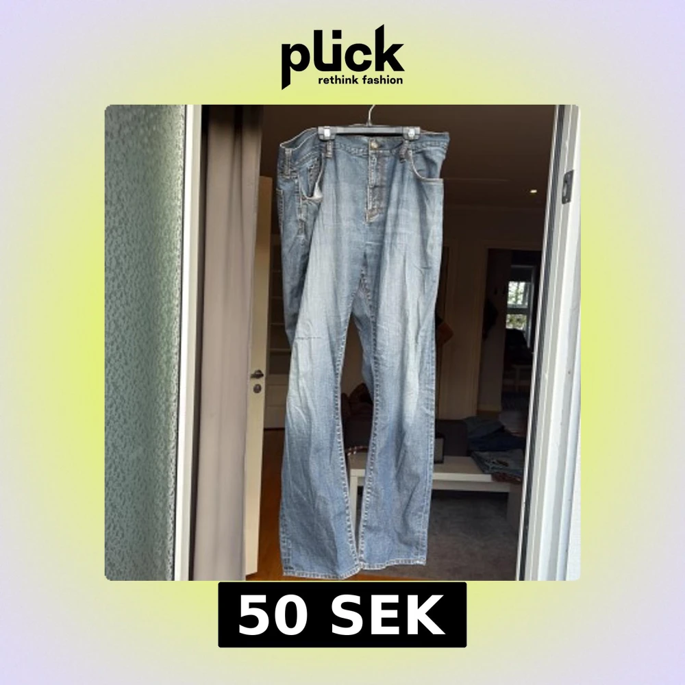 Jeans. Hål på högerknäskål därav priset