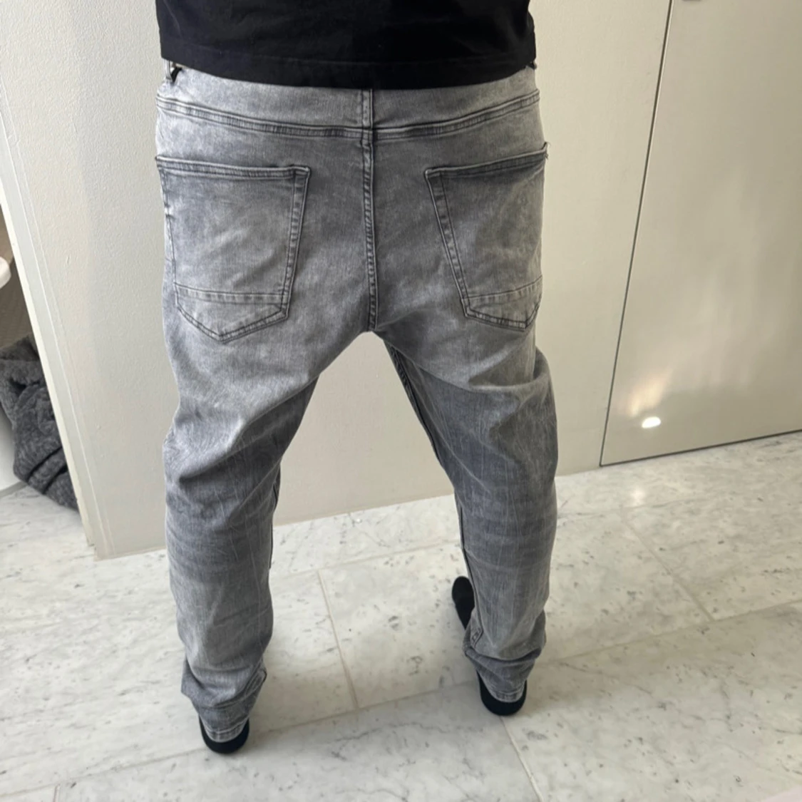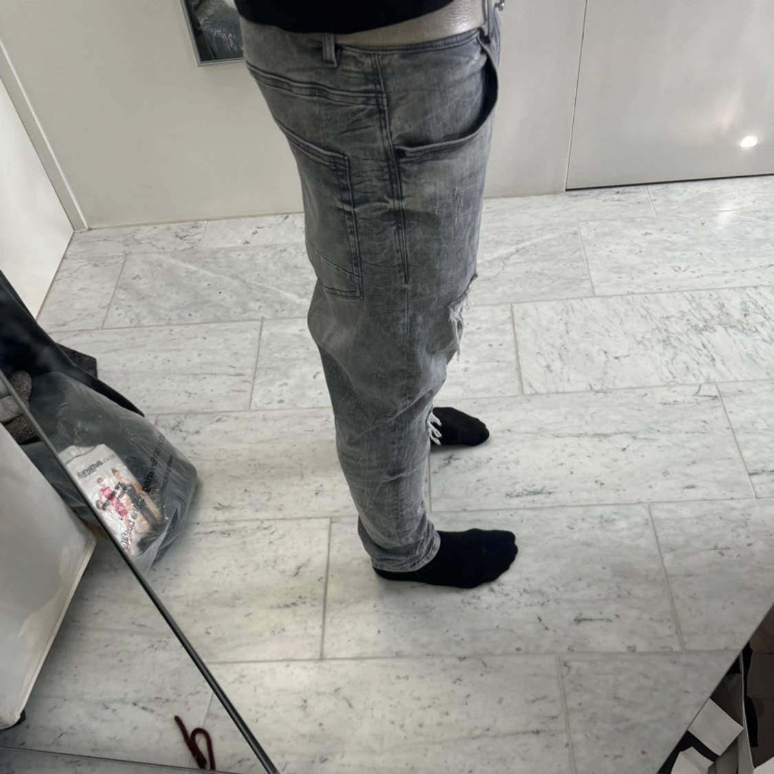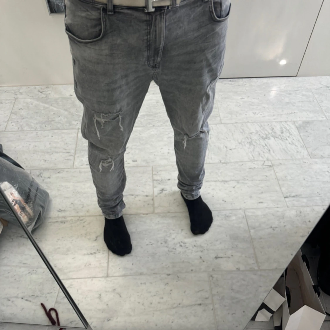 Grå slitna jeans med hål