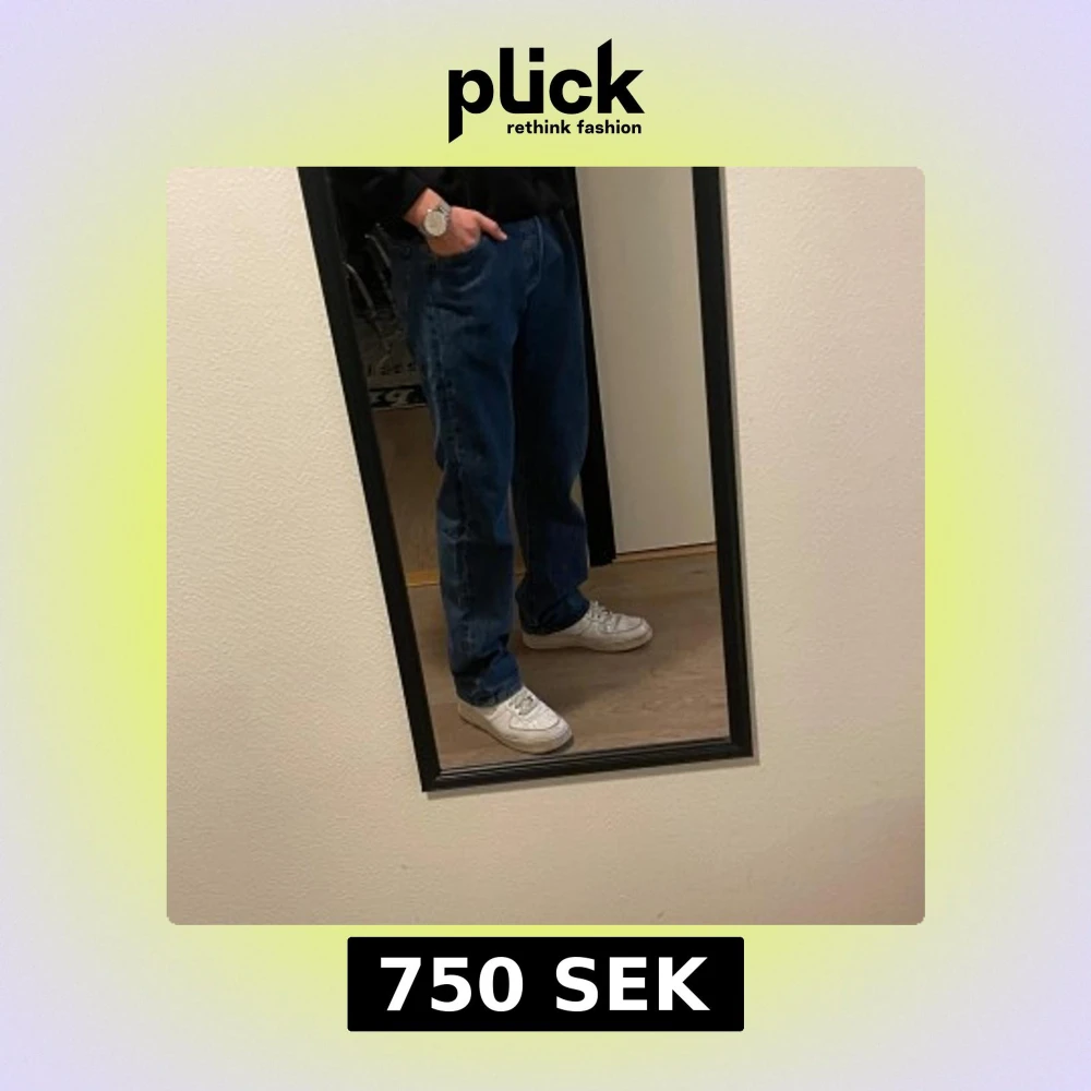 Helt nya, oanvända. Det är snygga blå jeansbyxor med en klassisk straight passform. De har en midwaist design och är perfekta för en avslappnad stil. Byxorna har en dragkedja och knappar framtill samt fickor både fram och bak.