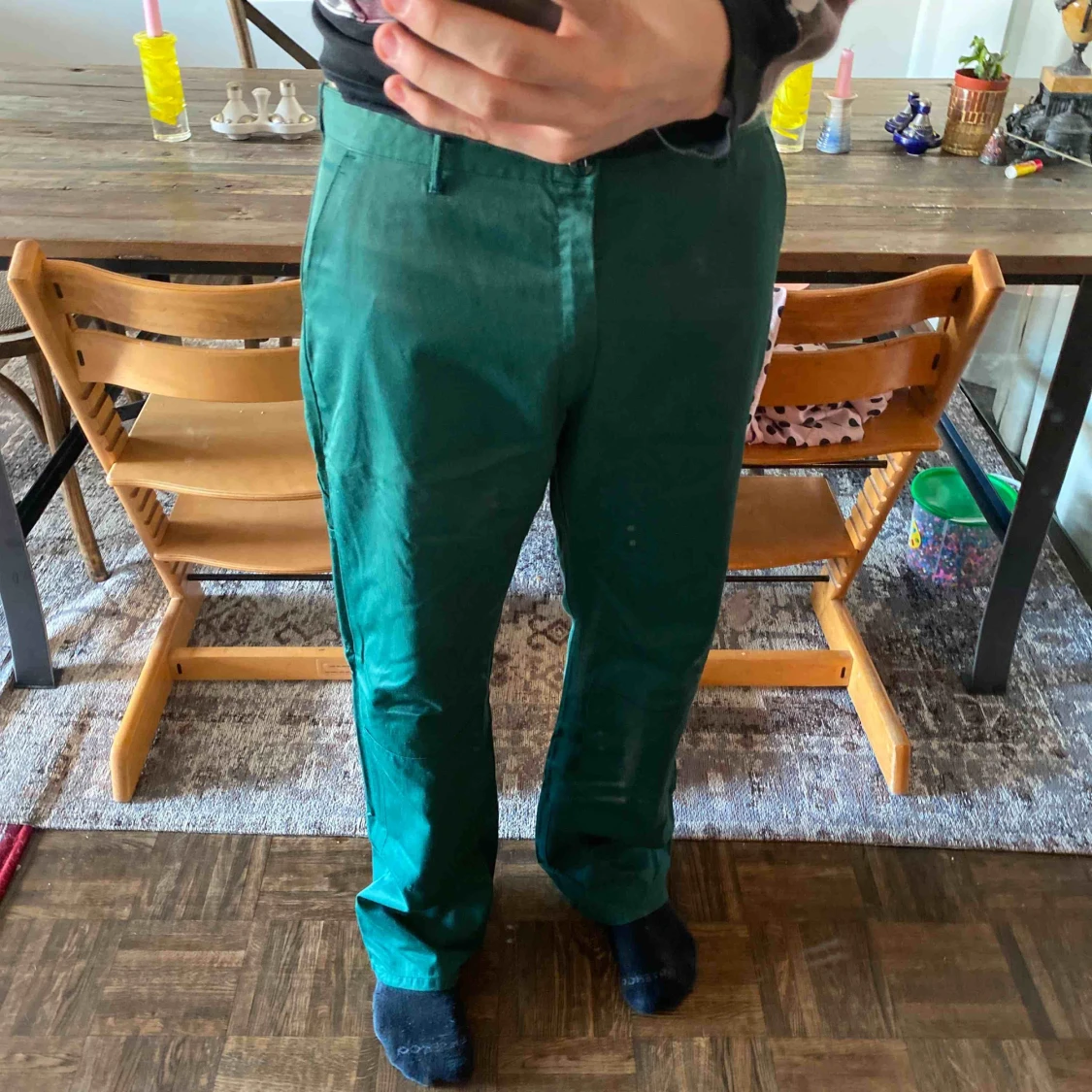 Skit balla byxor med fickor på olika ställen och i grön färg. Kan gå ner till 150kr för en snabbaffär alltså upp hämtning hos mig dagen där på. Öppen till frågor och bud!