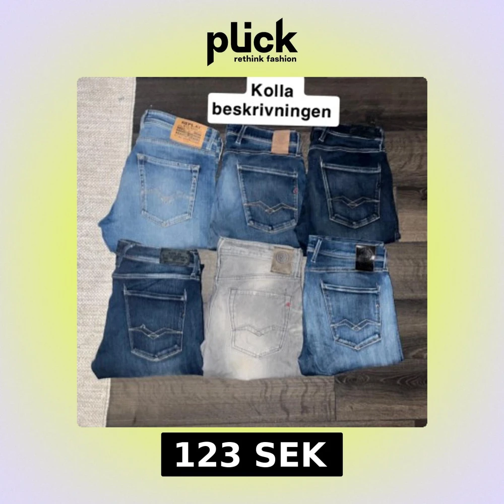 Finns över 100 par Replay och Nudie jeans mm ute på min profil och det kommer ut fler dagligen så börja följ! Priserna är från 200kr st Stort utbud i storlekar och färger. Skriv ej och fråga här angående färger, storlekar och modeller utan kolla själv på min profil vad som finns för jag hinner tyvärr ej svara alla som skriver annars. Fråga ej angående leverantör :). Köp ej denna annons, isåfall skickas ett par off brand jeans !