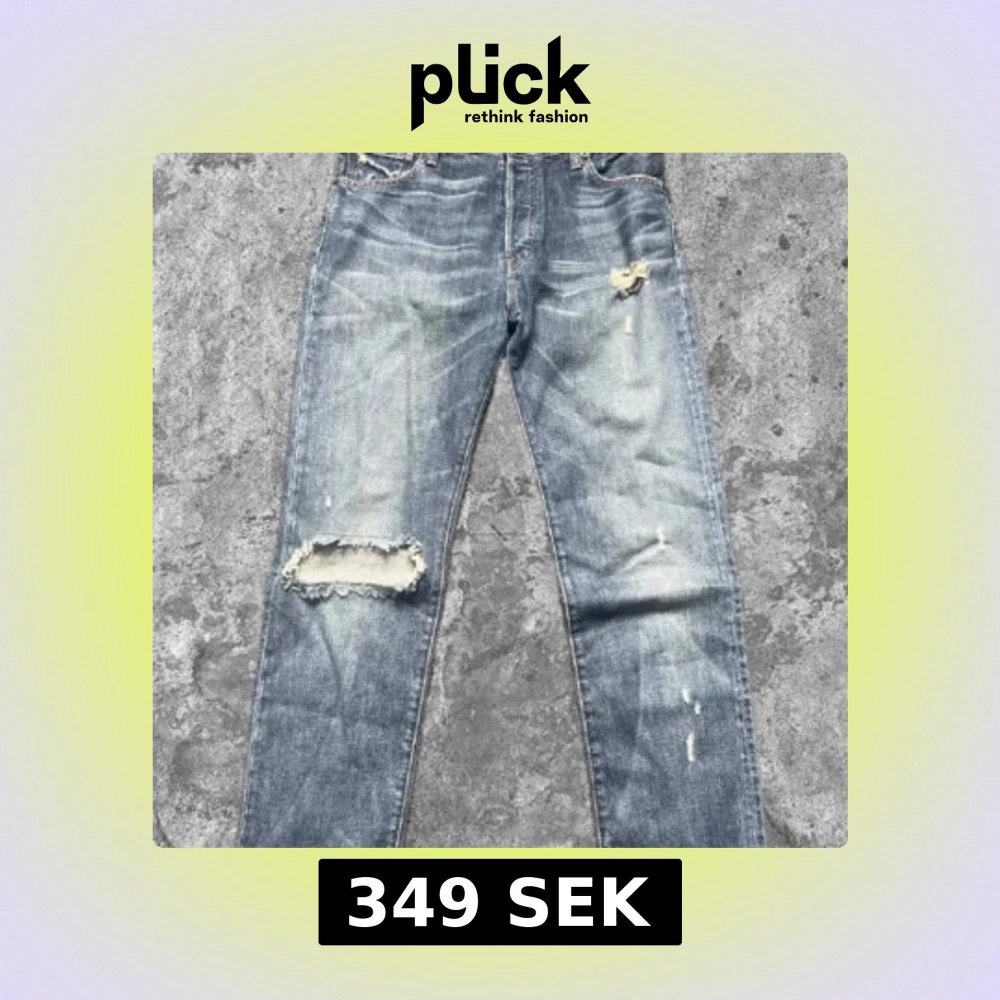 Snygga sällsynta blå jeans från denim and supply med galen fade och sköna slitningar. Storlek w28 men sitter mer som W29 L33. Sitter mellan slim och straight. Kom gärna med frågor. Pris kan diskuteras🤝