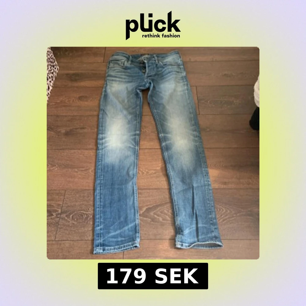 Storlek 31/34. Bra skick förutom märket/patchen på baksidan som ni ser i bilden. Skriv om ni har några frågor.