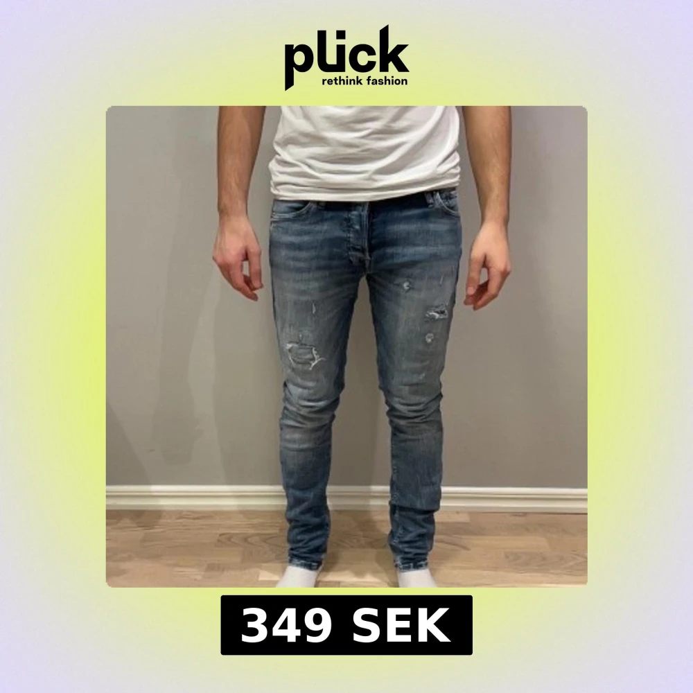 Säljer ett par blå slim fit jeans modell Glenn i storlek 31/32. Jeansen har slitna detaljer och en snygg tvättad look. Klassisk femficksmodell med dragkedja och knapp. Perfekta för dig som gillar en smalare passform. Priset är diskuterbart så det är bara att höra av sig 🤝🤩