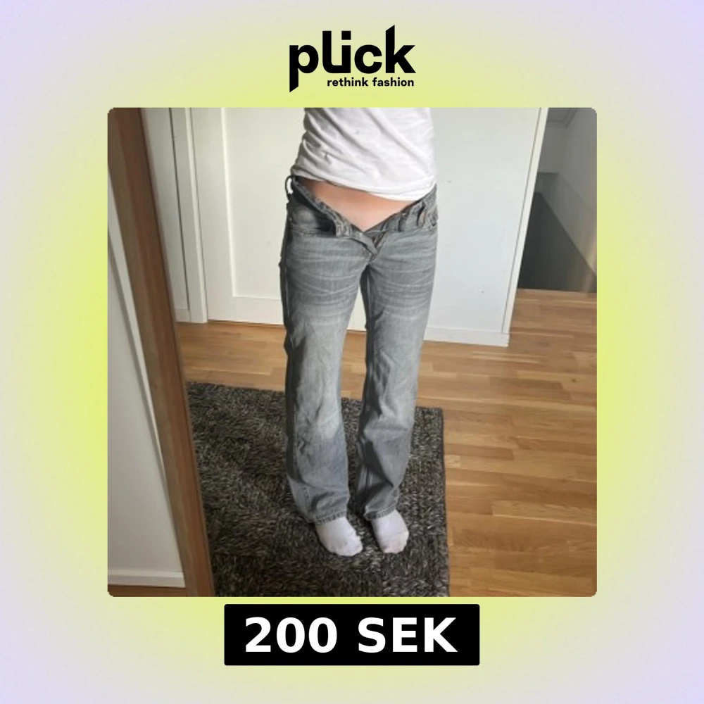 Säljer ett par gråa Weekday Arrow Low Straight Jeans i storlek 23/30. Lågmidjade och aldrig använt