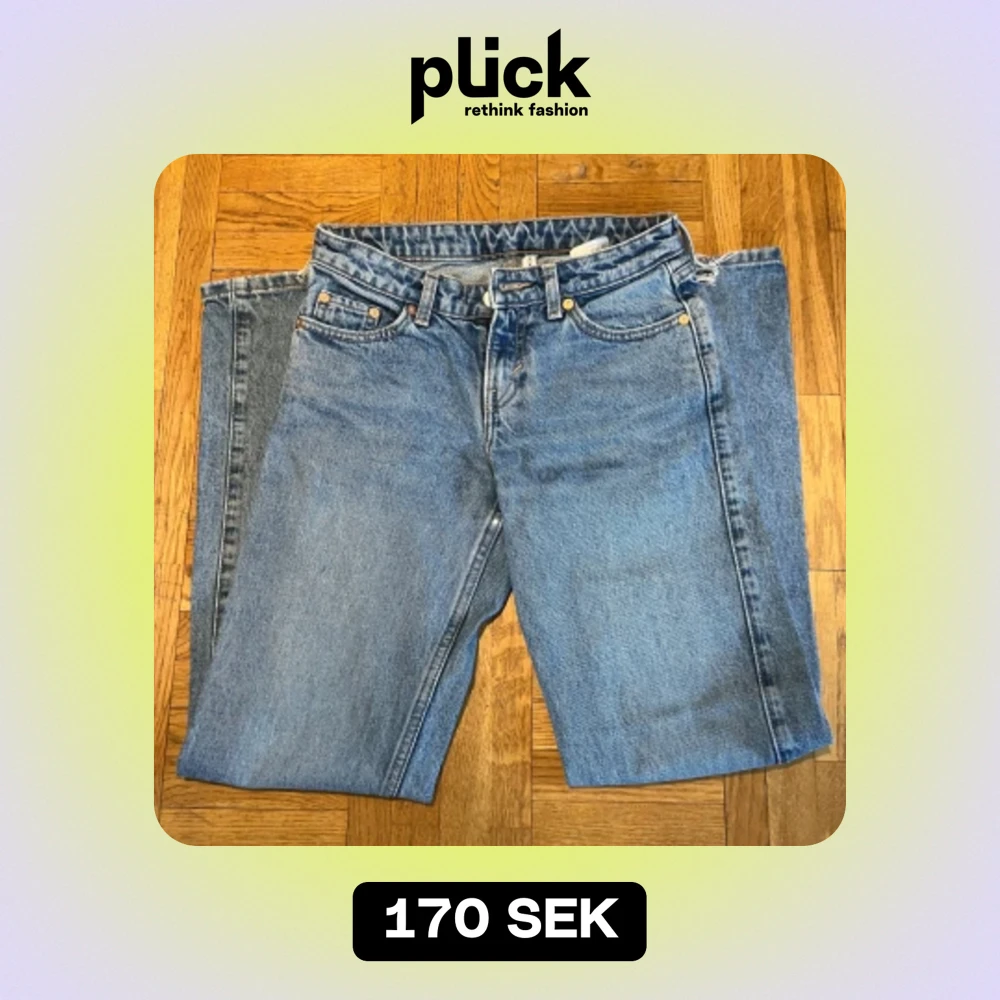 Jätte snygga jeans från weekday, straight! Skulle säga att de är stl XS-S. Passar mig perfekt som är 162cm lång och bär xs/s!💞💞Köpta för 350kr här på Plick. Slitna ner till, skriv priv vid närmare bild på det. Priset går definitivt att diskuteras!😊