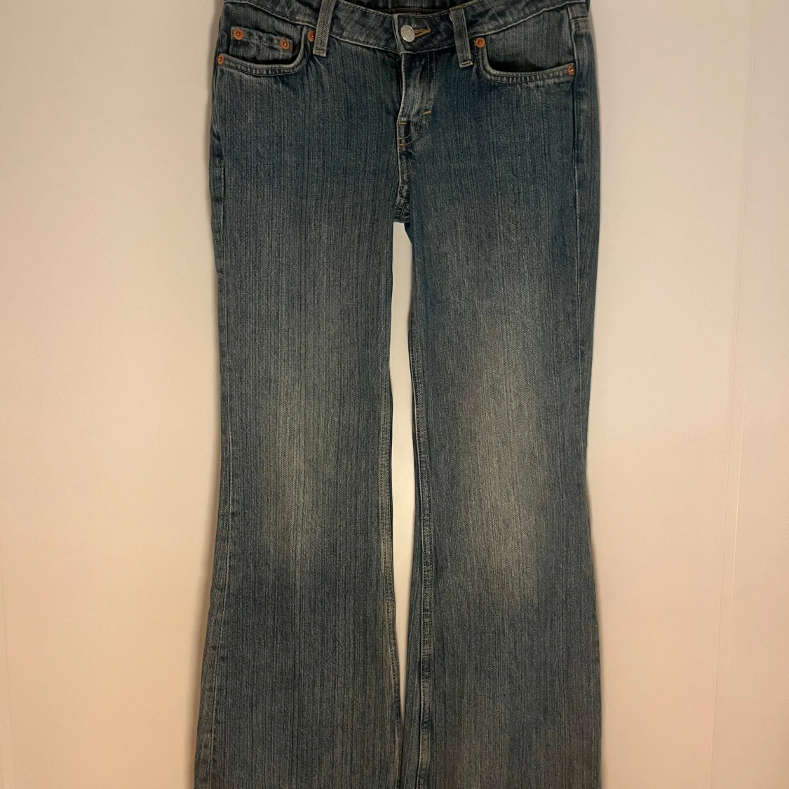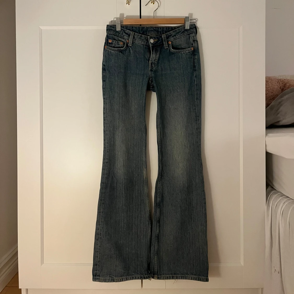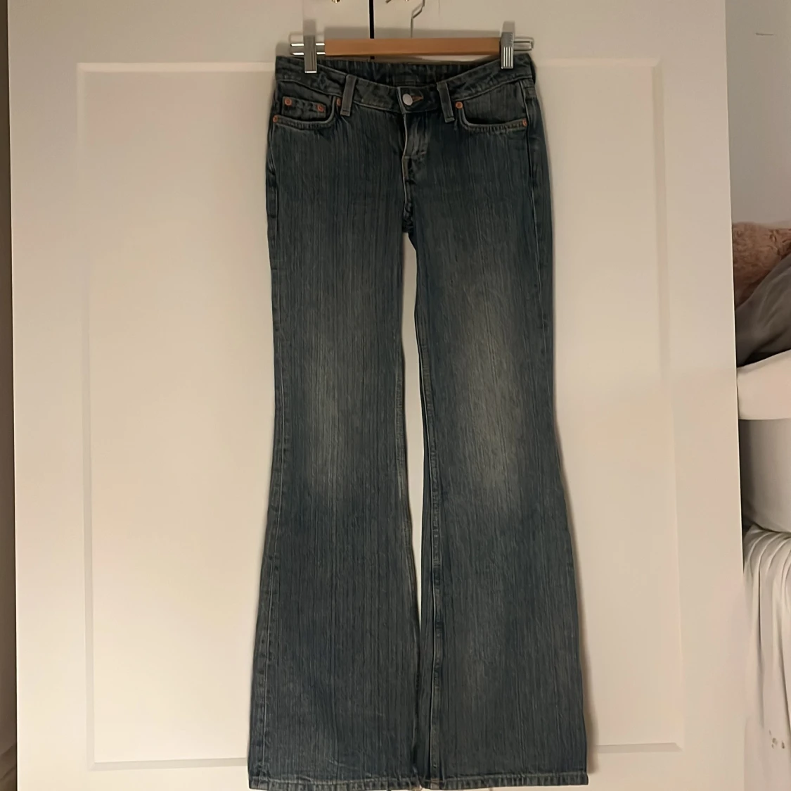 Intressekoll på mina otroligt snygga weekday jeans, stl är 25/30❤️ skulle säga att de passar nån som har 32 i längd🥰pris kan diskuteras, bootcut low!