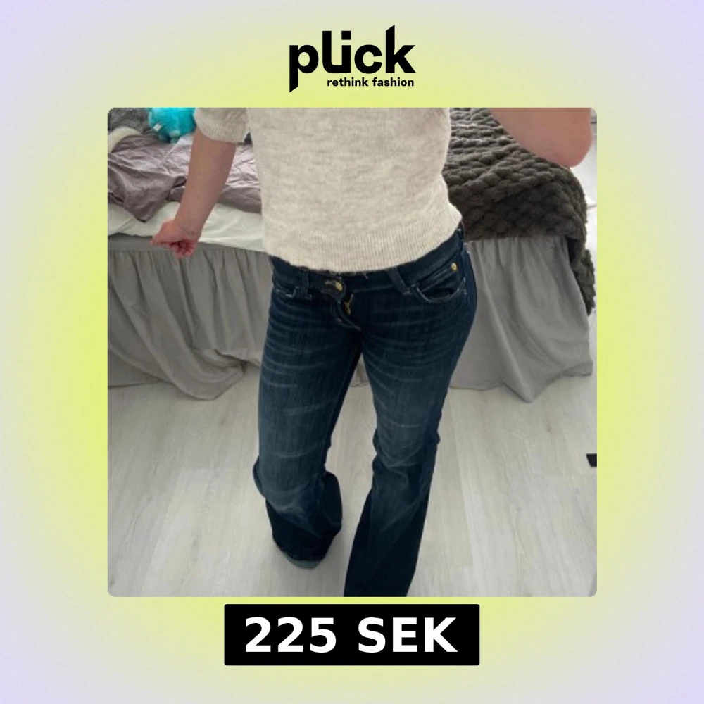 Snygga mörkblå jeans från weekday med bootcut passform och låg midja. Jeansen har klassiska fickor, och en cool tvättad look. Perfekta för dig som gillar en avslappnad men ändå trendig stil. Storlek 25/32, passar mig som 160.🥰se de sista bilderna för små defekter.