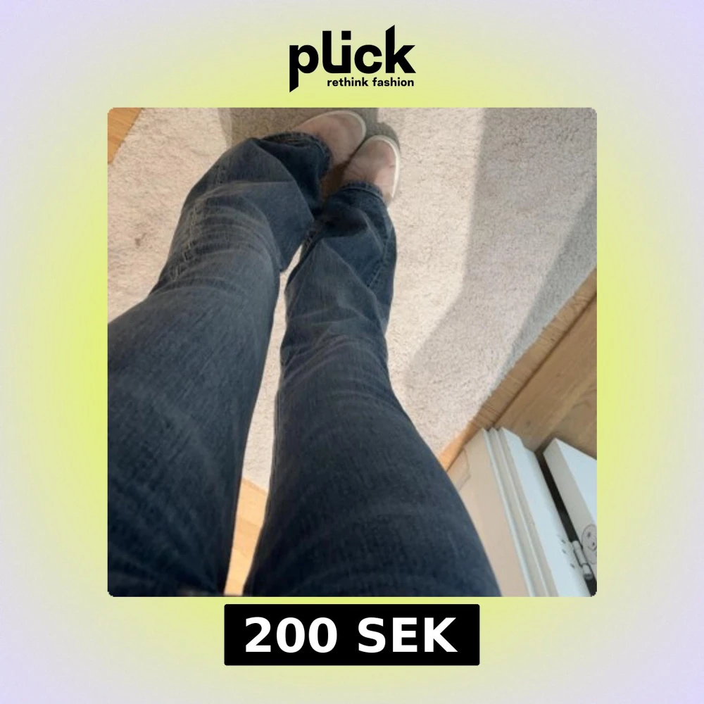 Säljer ett par weekday jeans i blå denim med utsväng. Jeansen har fem fickor, kopparfärgade nitar och låg midja. Snygg tvätt och skön passform. Knappast andvända så inga defekter🩷 Flame, nypris 590.
