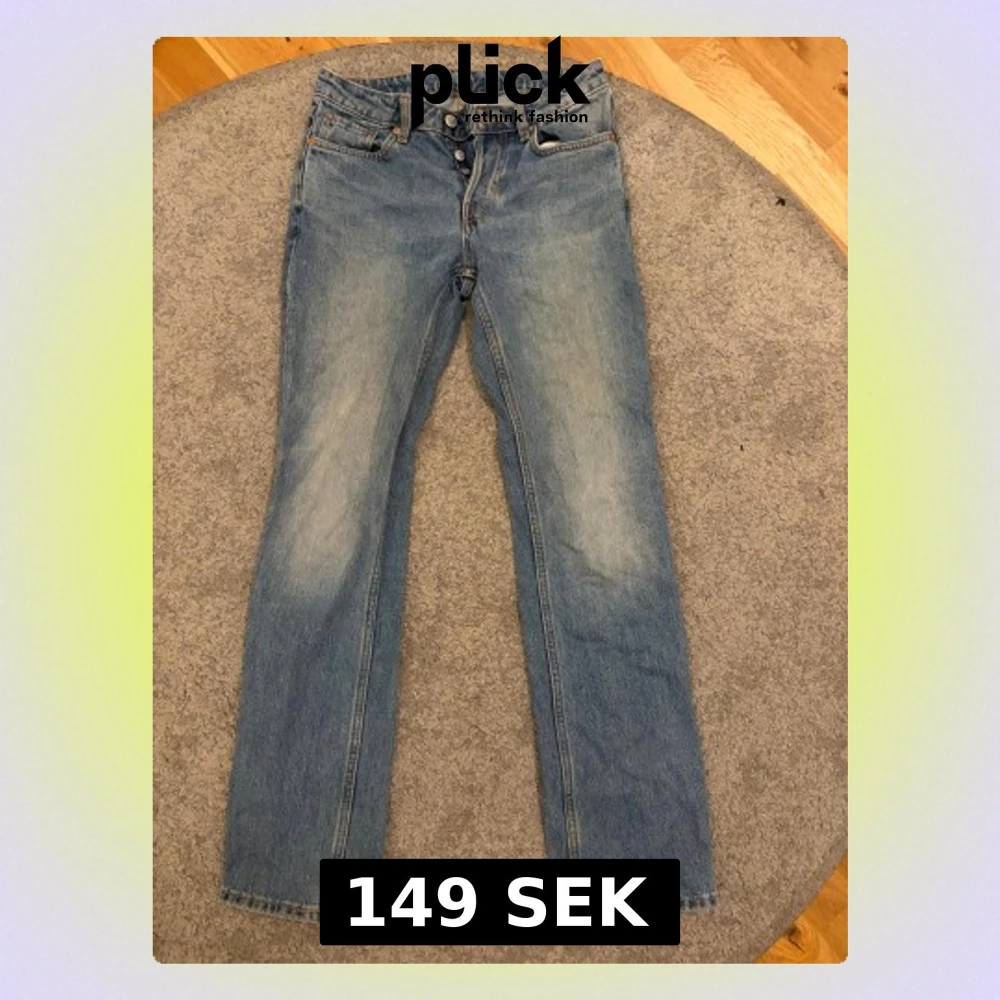 Snygga ljusblå jeans från Weekday i modellen Pin Mid Straight. Jeansen har raka ben och midwaist. De har slitna detaljer vid bensluten och är tillverkade i bomull. Perfekt för dig som gillar en chill och tidlös look.