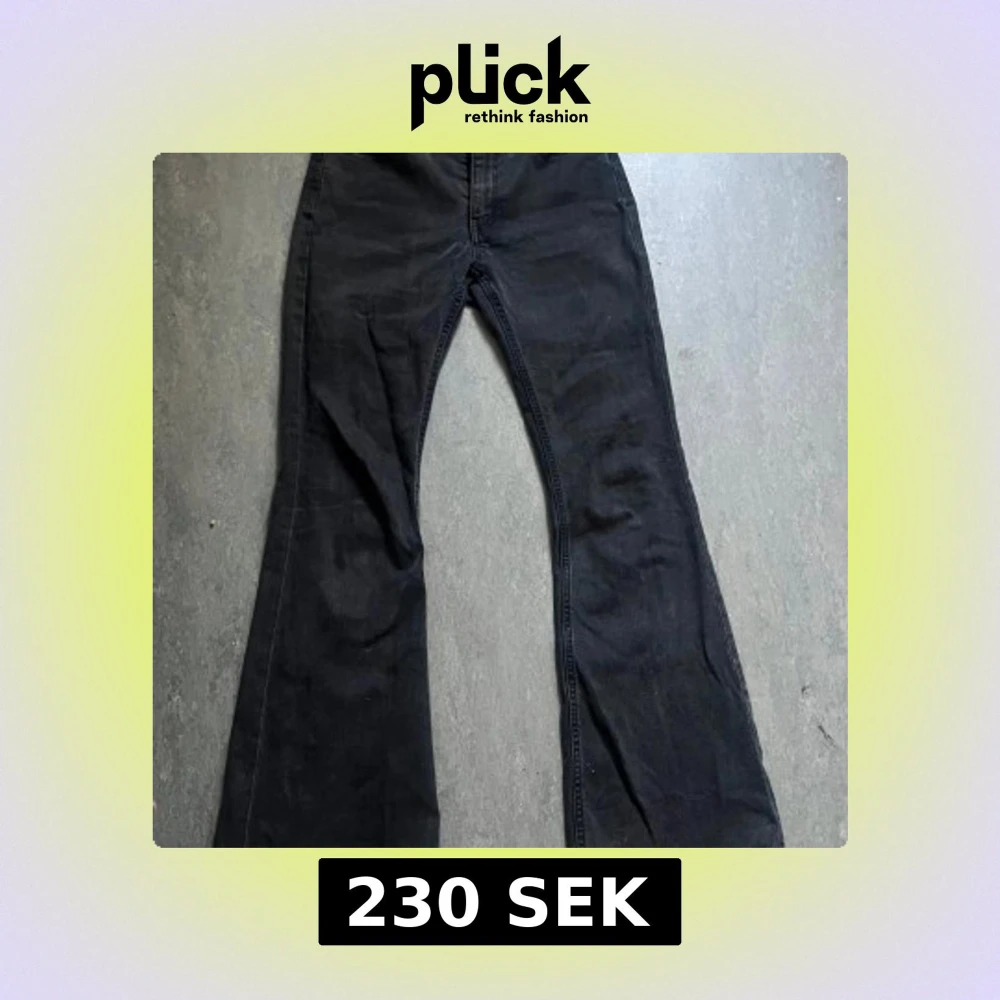 Säljer ett par svarta bootcut jeans från Weekday, modell FLAME. Jeansen har klassisk femficksdesign, medel midja och vida ben nertill.