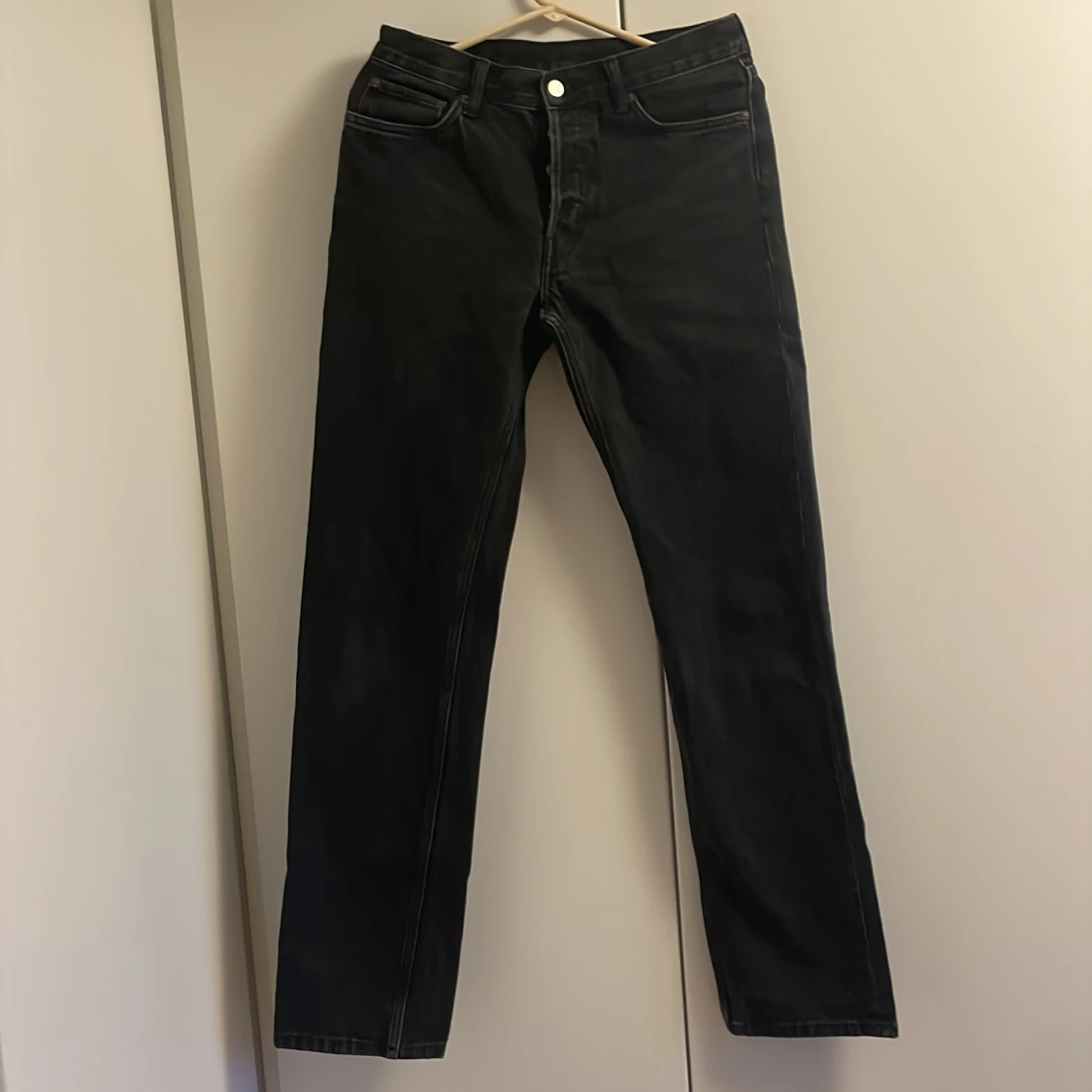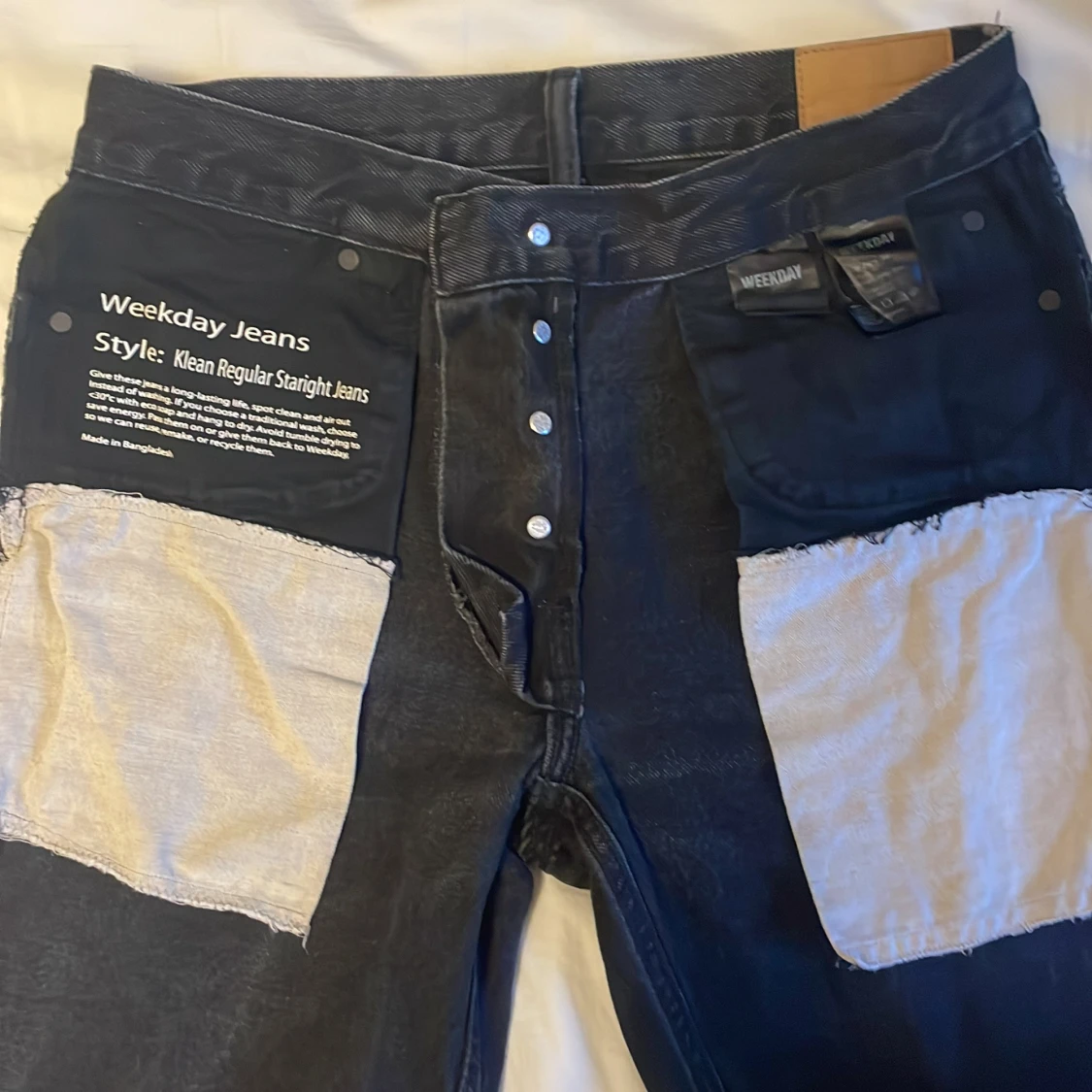 Ett älskat par som nu tyvärr måste säljas. Snygga svarta jeans från Weekday i modellen Klean Regular Straight. Om du precis som jag tyckt att weekdays jeans har lite för små fickor är det här jeansen för dig! Min käraste mormor själv har förlängt fickorna till, enligt mig, perfekt storlek. Certifierad mormorkvalite! Köp köp köp!! Fråga förstås vid minsta fundering!