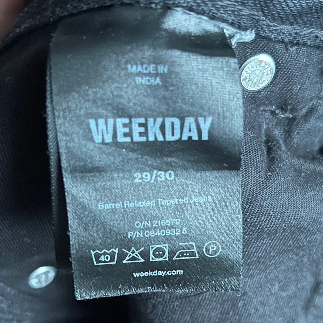 Svarta jeans som är lösa men väldigt sköna som är i storlek 29/30 men passar i S men även i M