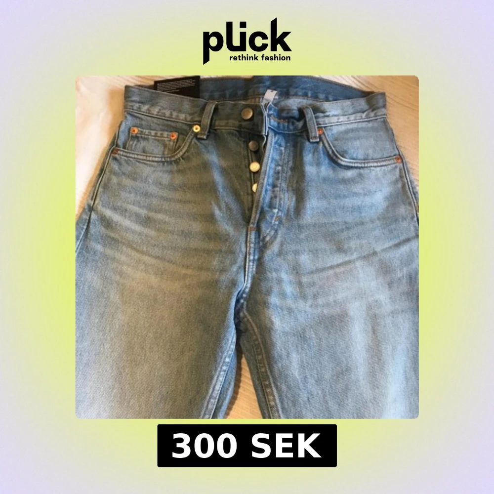 Snygga ljusblå jeans från Weekday med klassisk femficksdesign och raka ben. Hög midja och knappgylf ger en retrovibe. Jeansen är tillverkade i bomull och har en clean, enkel look som funkar till allt. Perfekt för dig som gillar stilrena och tidlösa jeans. Helt oanvända. Prislapp kvar. Stl 27/30