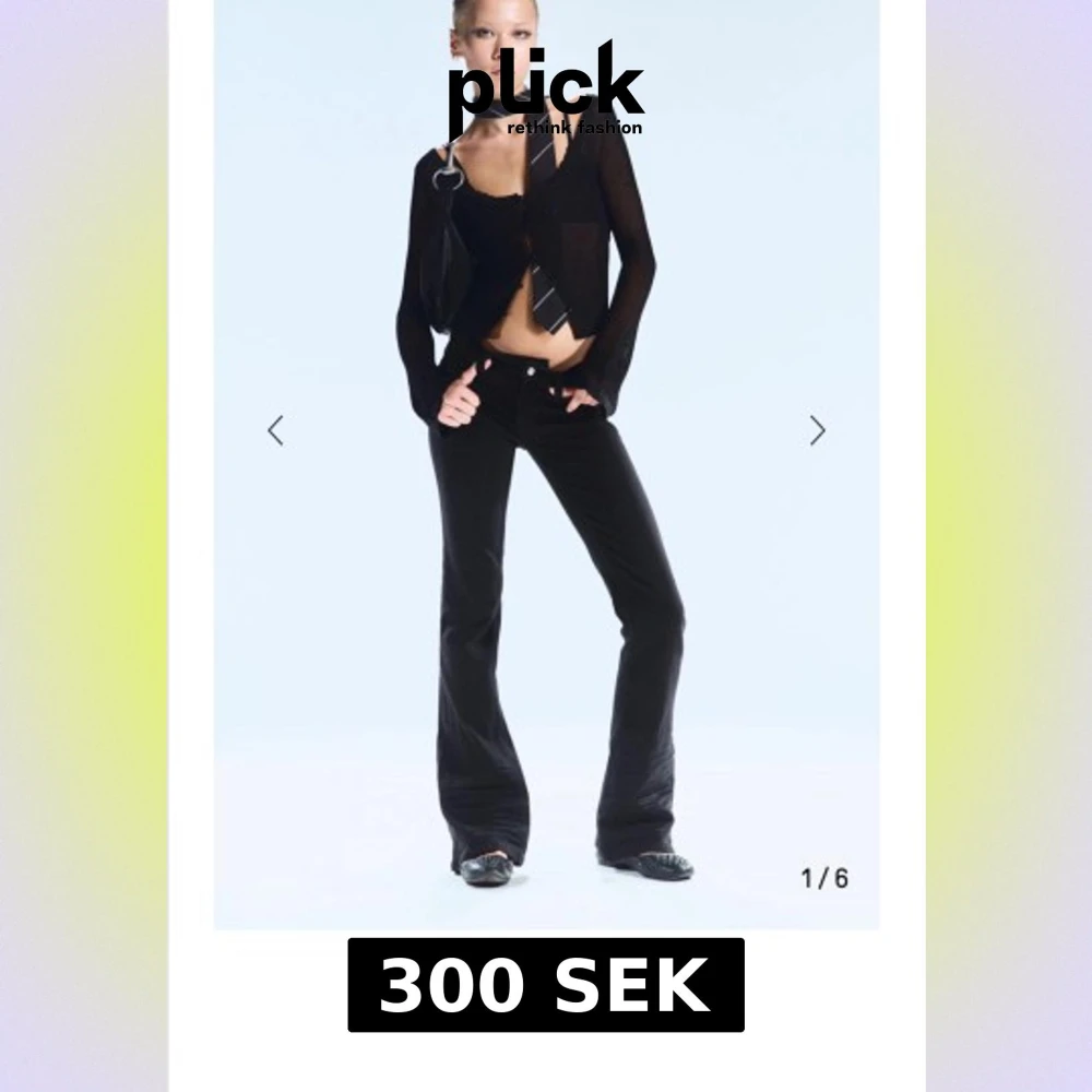 Säljer ett par svarta jeans från Weekday med bootcut-snitt och låg midja. De är använda ett par gånger men ser helt nya ut och har kvar den svarta färgen. De är i stolen 26:32 skriv för fler bilder och priset kan diskuteras