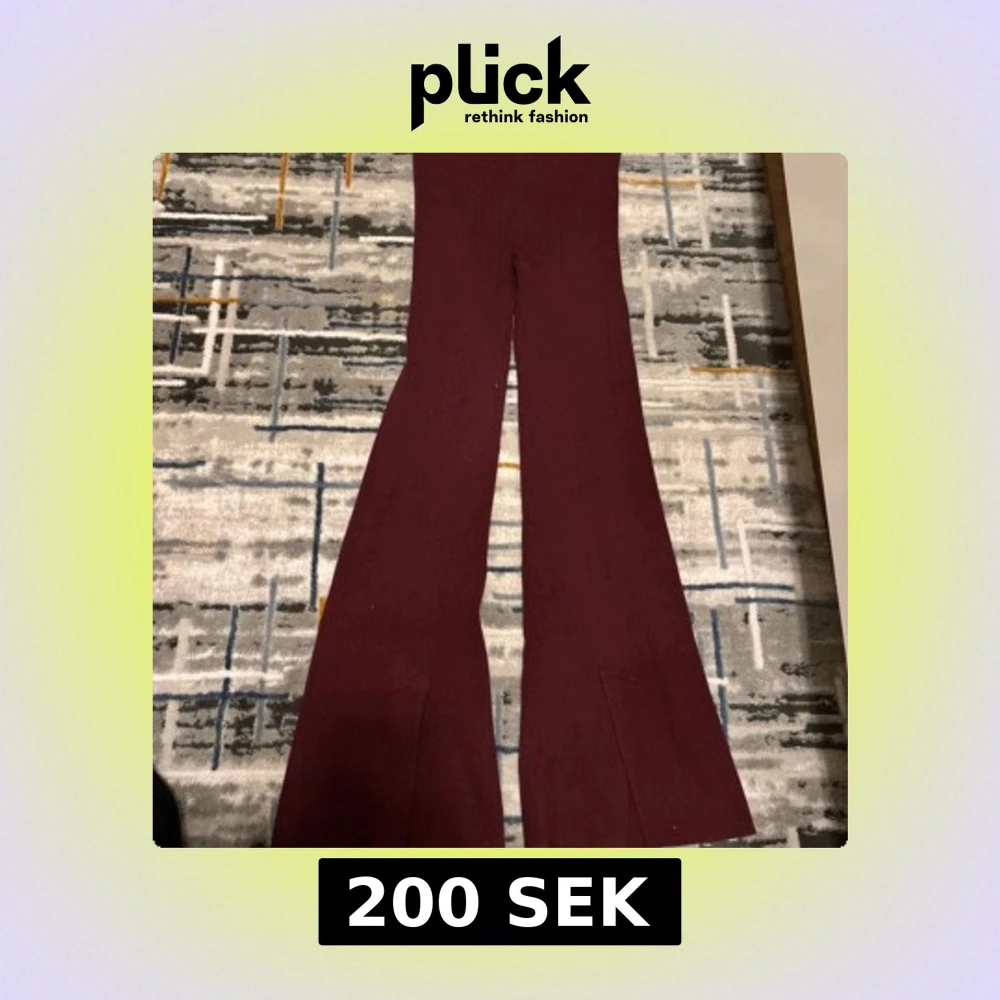 Snygga mörkröda ribbade byxor med bootcut-ben och hög midja. Materialet är mjukt och stretchigt, vilket gör dem riktigt sköna att bära. Perfekta för dig som gillar en trendig och avslappnad look med lite extra attityd.