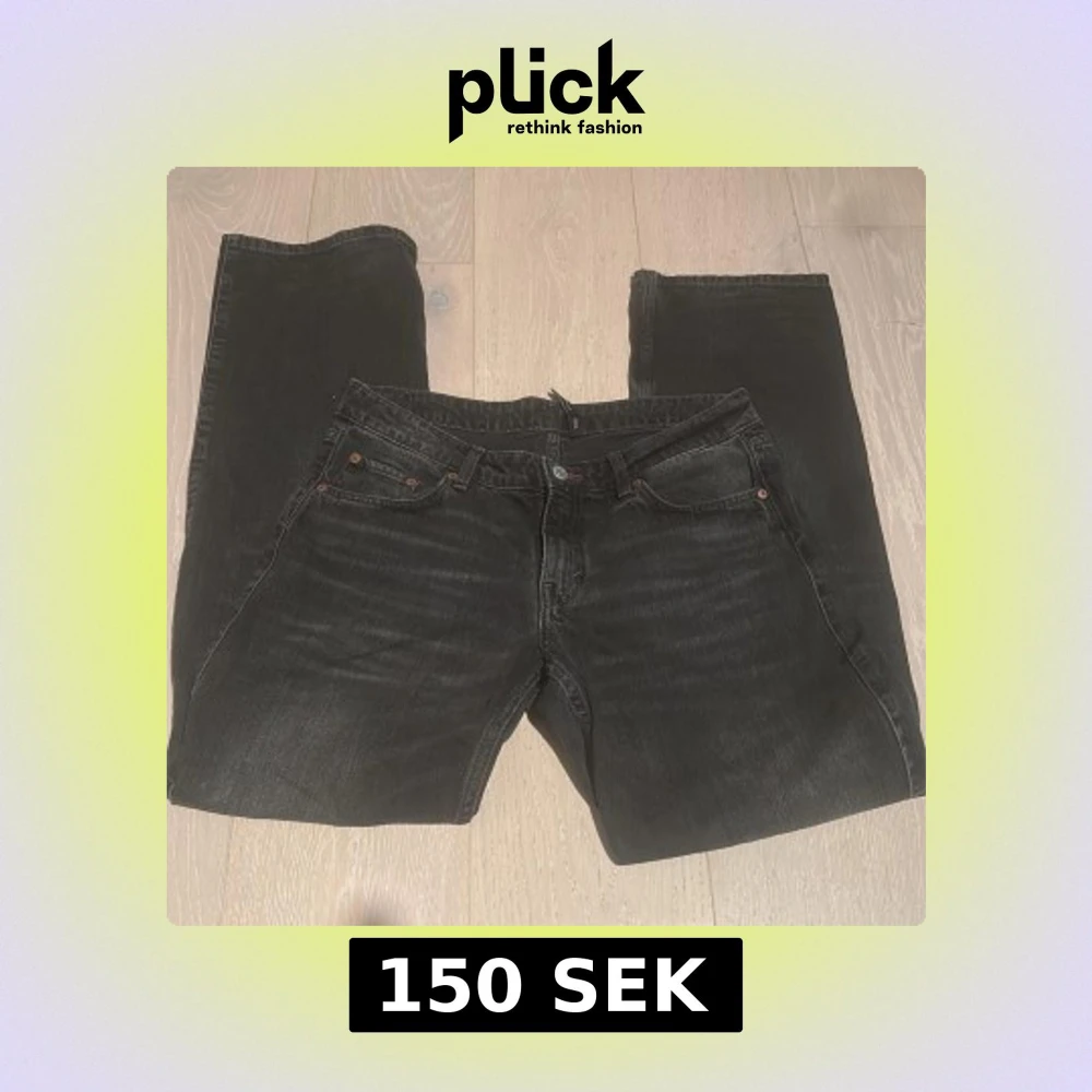 Säljer ett par svarta jeans från weekday (arrow) med klassisk femficksdesign och raka ben. Jeansen har en snygg tvättad look. Perfekta baggy jeans för dom som vill ha det’