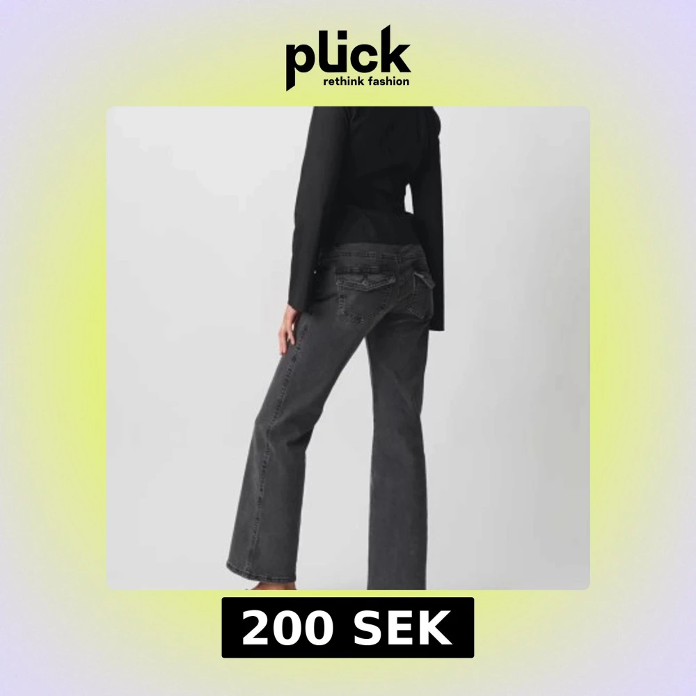 Snygga grå jeans från gina med bootcut-ben och dubbla knappar i midjan. Jeansen har klassiska fem fickor, svarta sömmar och en cool tvättad finish. Perfekta för dig som gillar en avslappnad men trendig look.
