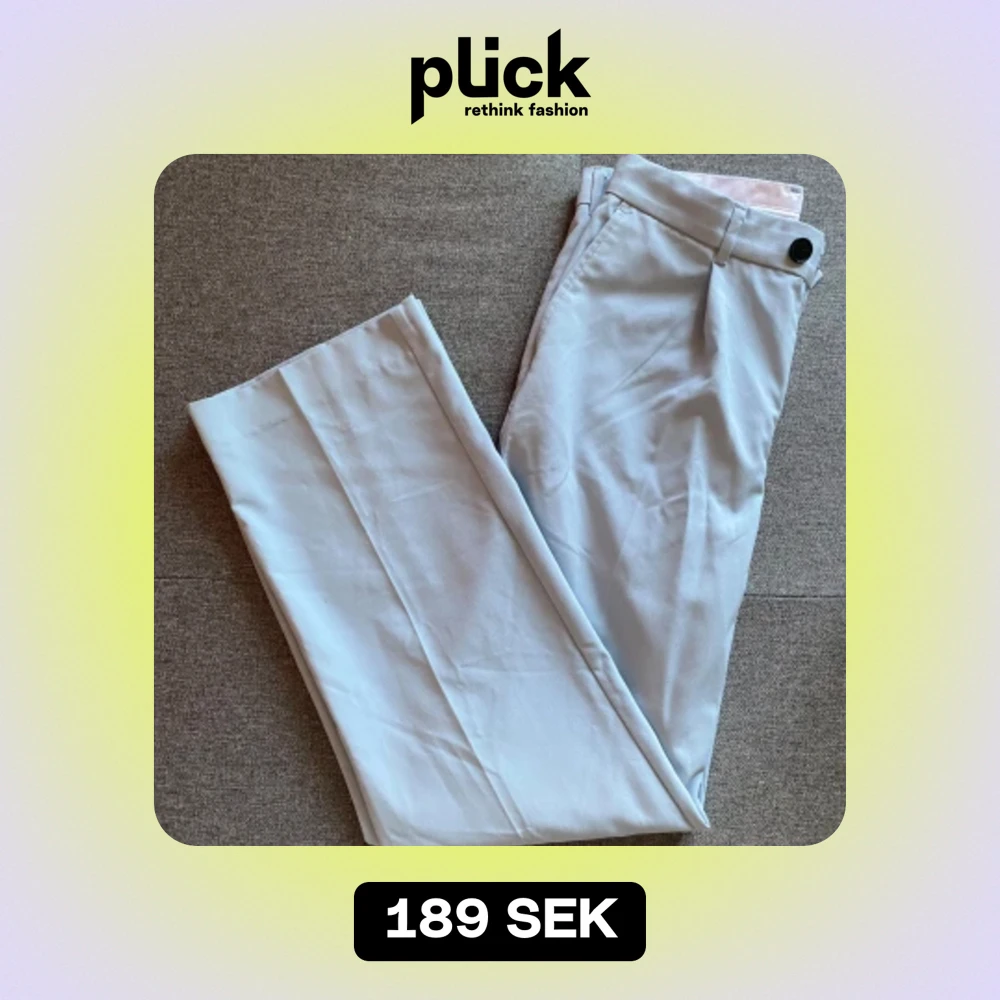 Säljer ett par stilrena ljusblå byxor från Weekday helt nya. De har en klassisk design med knappar och bälteshällor. Perfekta för både vardag och fest!