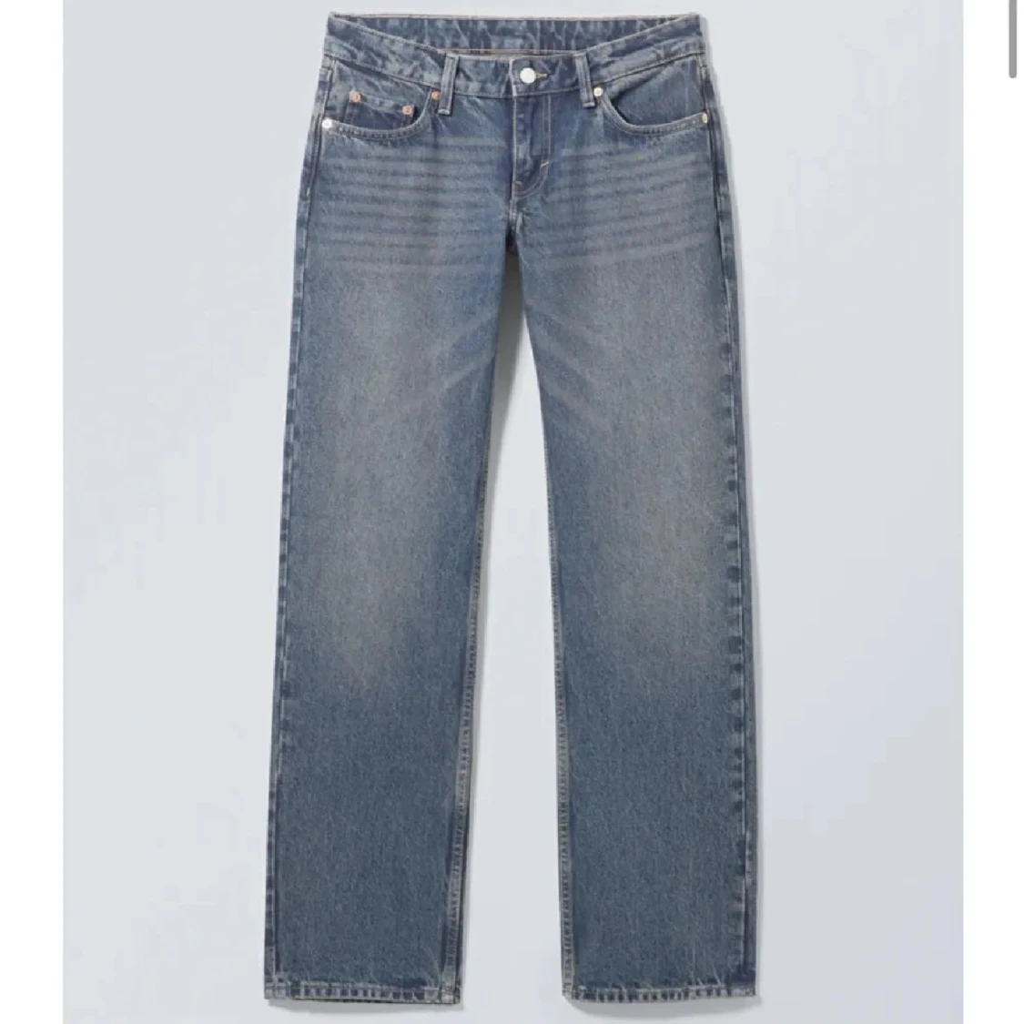 Jeans från weekday i modellen ”arrow low”, raka u modellen och skulle säga medel till låg midja. I väldigt bra skick då jag knappt använt dom. Pris går att diskuteras.