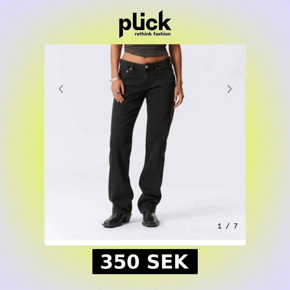 Säljer ett par svarta low waist straight jeans från weekday. Jag är 170cm lång. Dom är använda en gång. Jag tyckte dom va supersnygga men dom var lite för små på mig. Jag tog storlek W26/L34. Köptes för 600kr