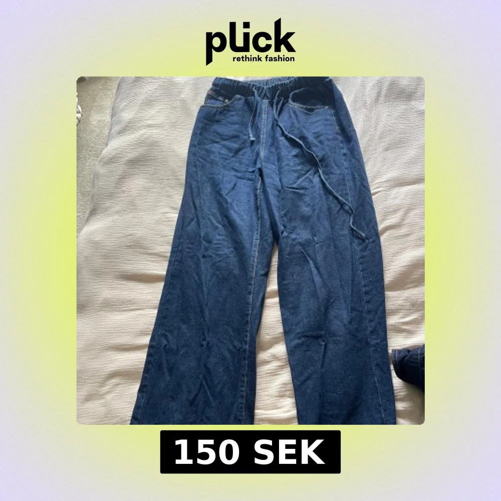 Mörkblått set med jeansbyxor och topp från SHEIN med bred passform och elastisk midja med snörning. Byxorna har klassiska fickor fram och raka ben med en croppad top till!💙🩵💙🩵