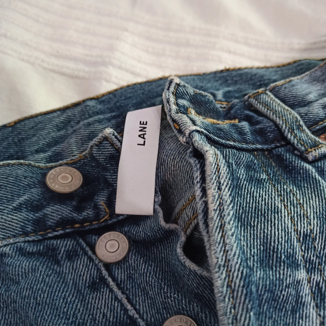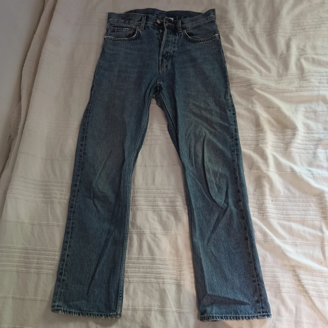 Ett par blåa Weekday jeans i storlek 29/30. Sitter dock något större. Använda, skick enligt bilder, rak passform, modell "Lane". Nypris 500 kronor.