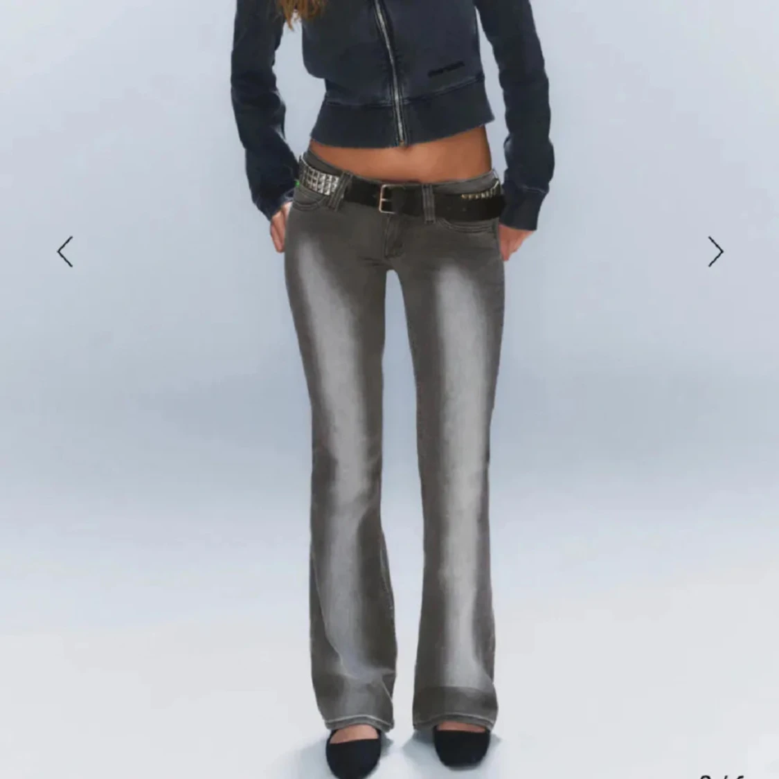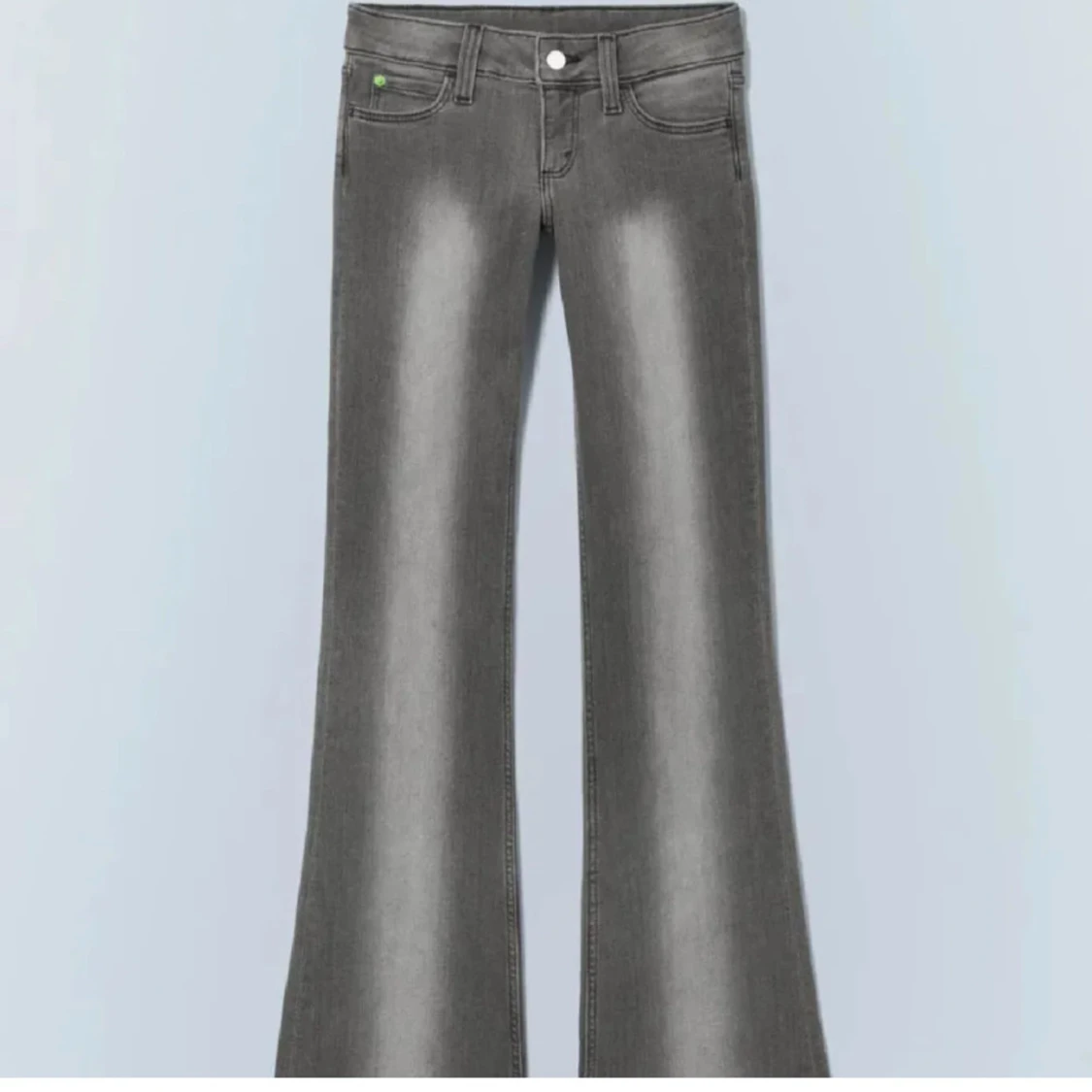 Snygga grå bootcut jeans från weekday. Bra strechigt material och perfekt på mig som är 165cm lång❤️De är i storlek 28/32.