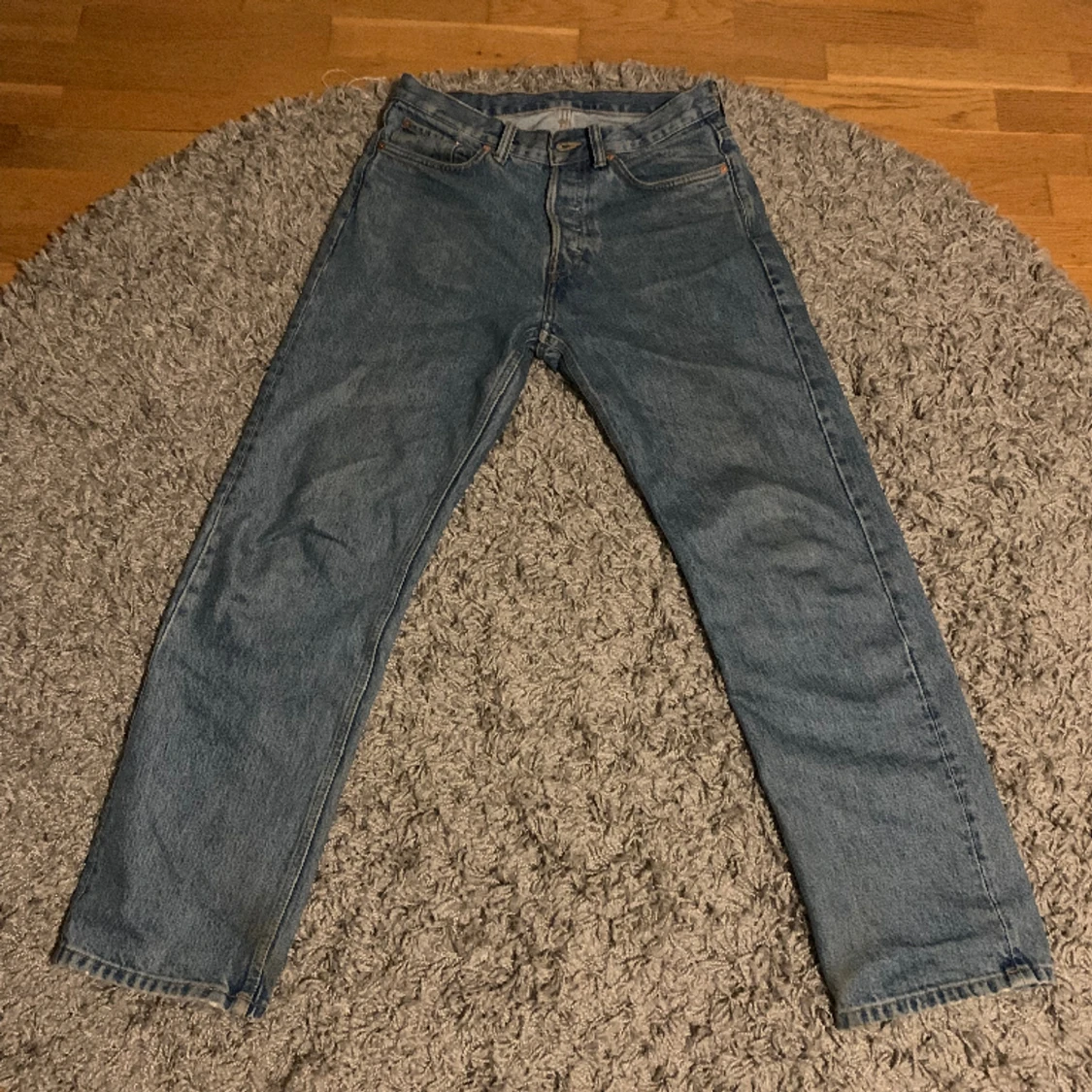 Säljer denna riktigt goa jeans från weekday. De är köpta för 700 och säljer de för endast 200kr. Pris kan diskuteras dock. Skicket är 10/10 och säljer då jag växt ur de. Storleken är 27/30 (regular straight fit)