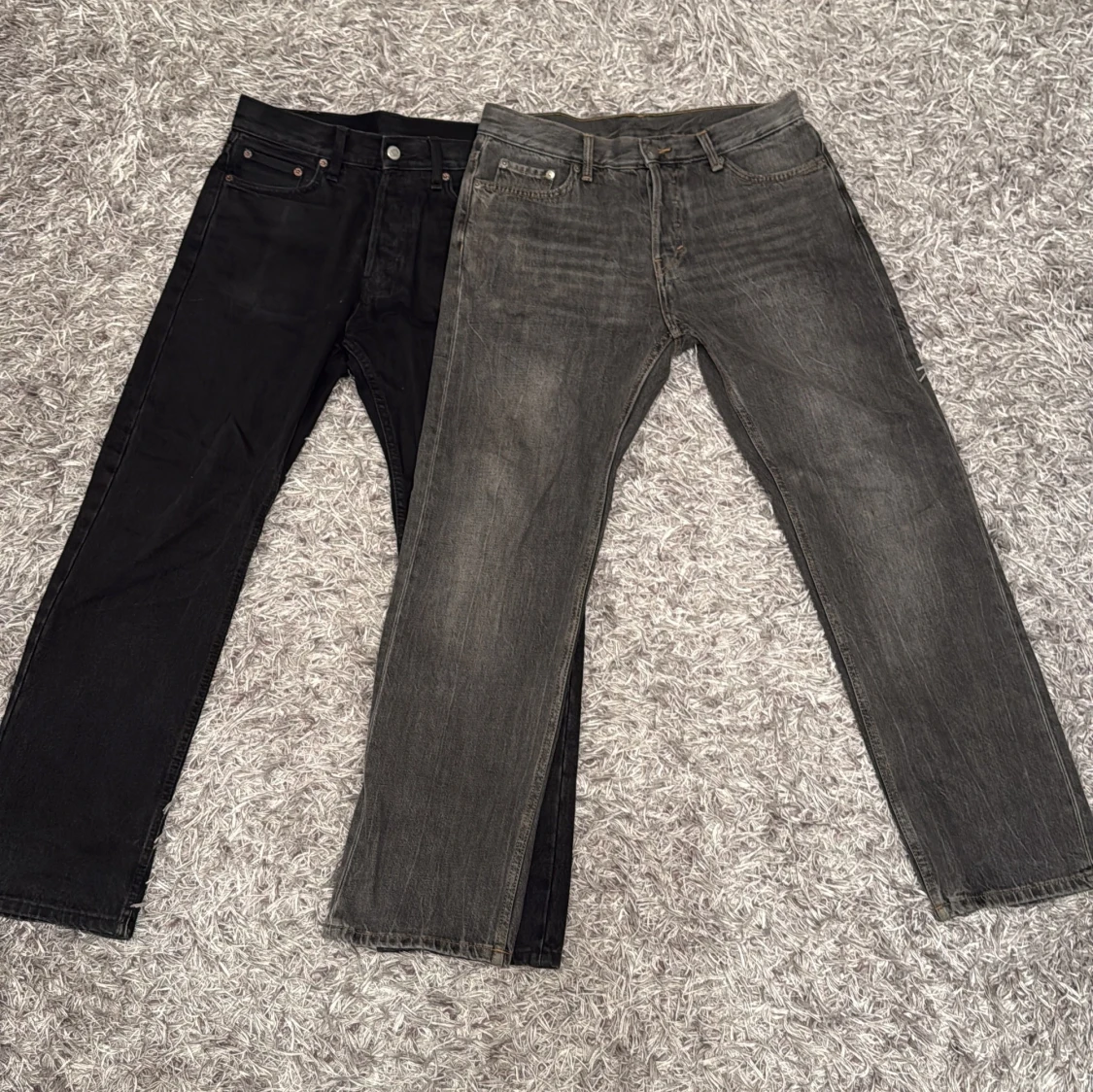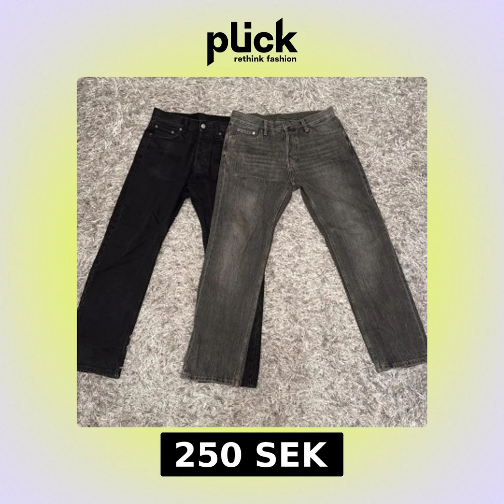 Säljer nu två par weekday jeans i modellen space, båda paren är i ett bra skicka dock finns det något lite tecken på användning. Jeansen är i storlek 28/30 jag säljer de för 125 styck eller 200 för båda. Har du den minsta funderingen är det bara att fårga
