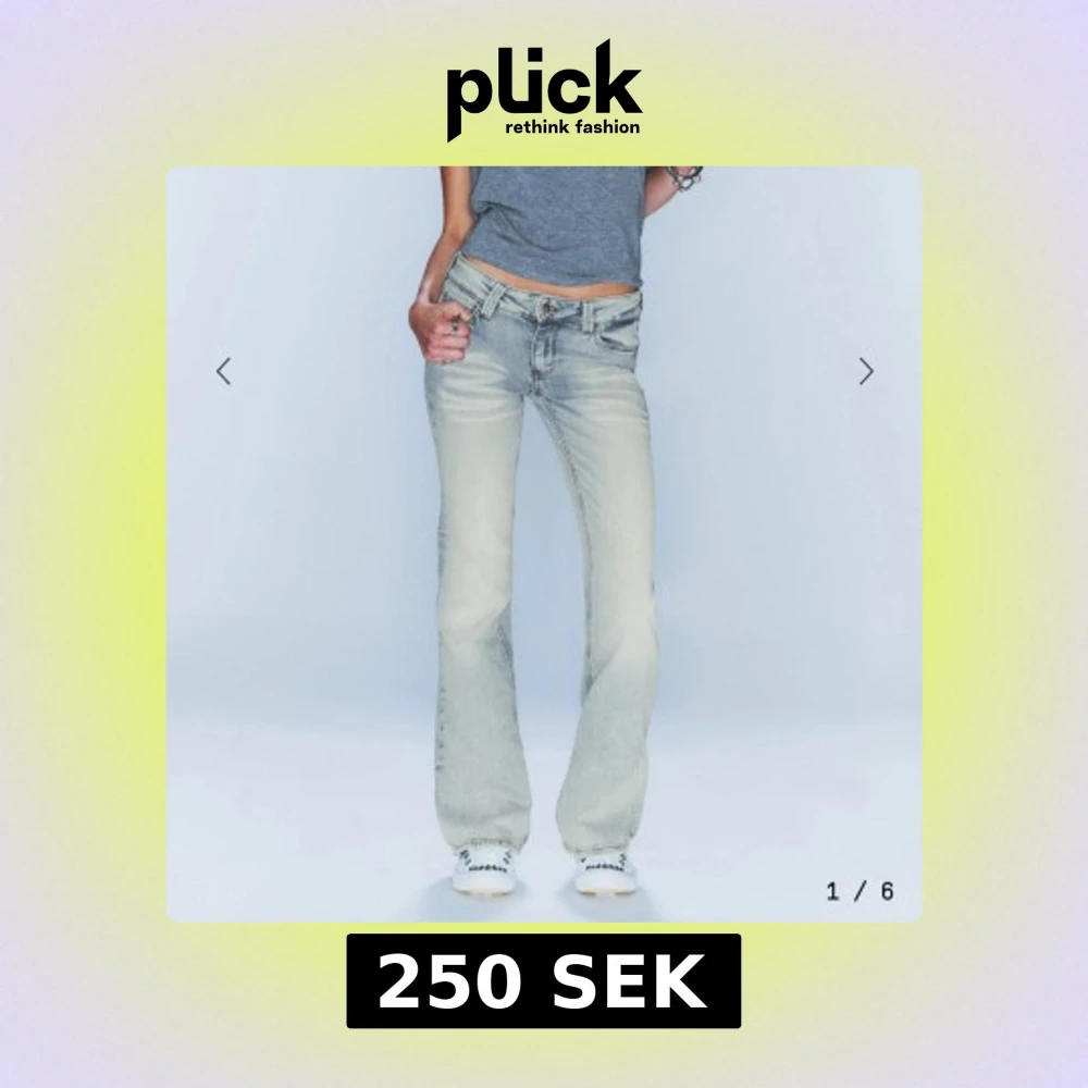 Säljer ett par jeans från weekday i w26 å L30. Midjemått tvärsöver är 34-35cm å innerbenslängden är 77cm🩷jag är cirka 160 å de passar bra i längden på mig🩷aldrig använda