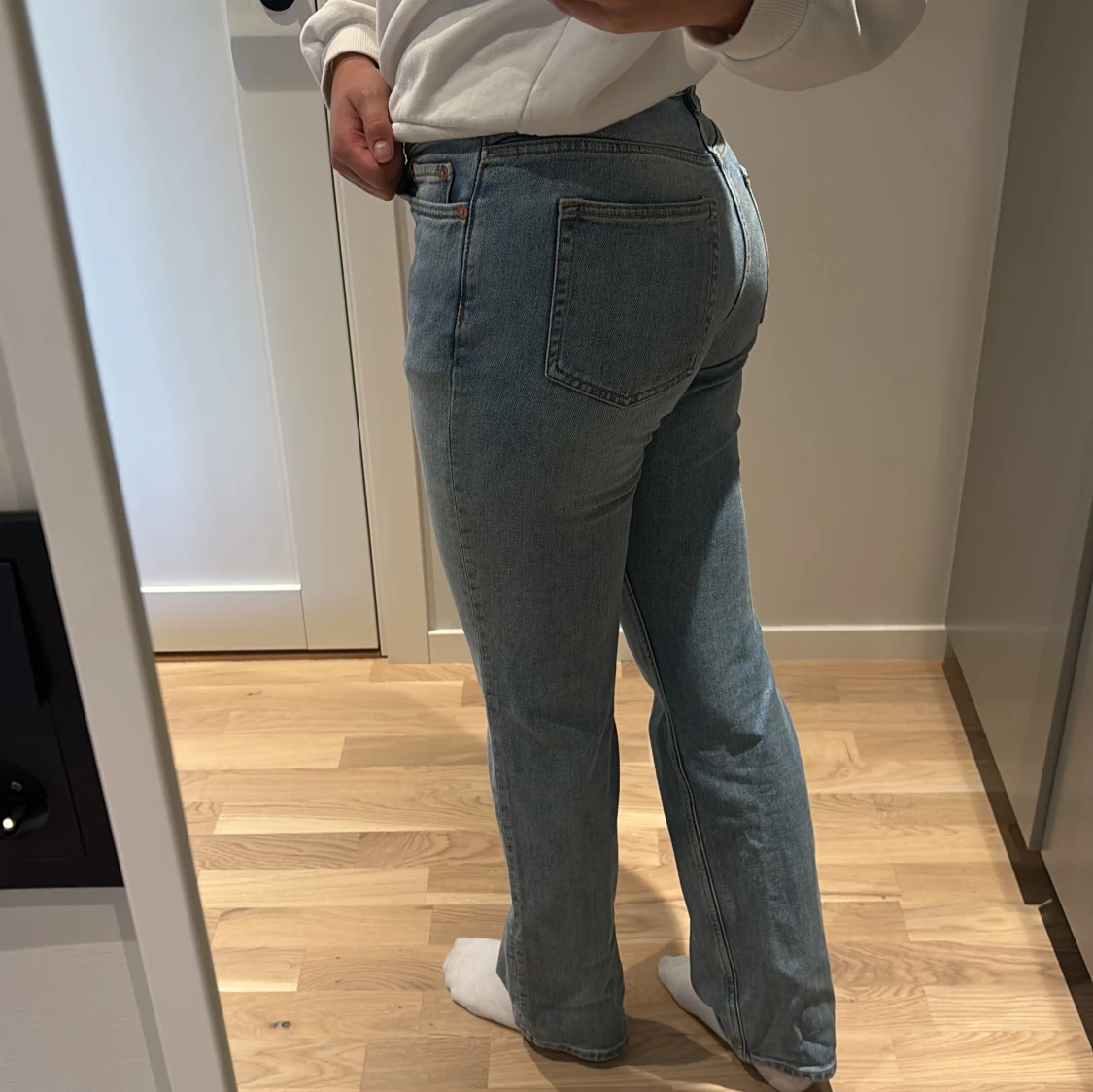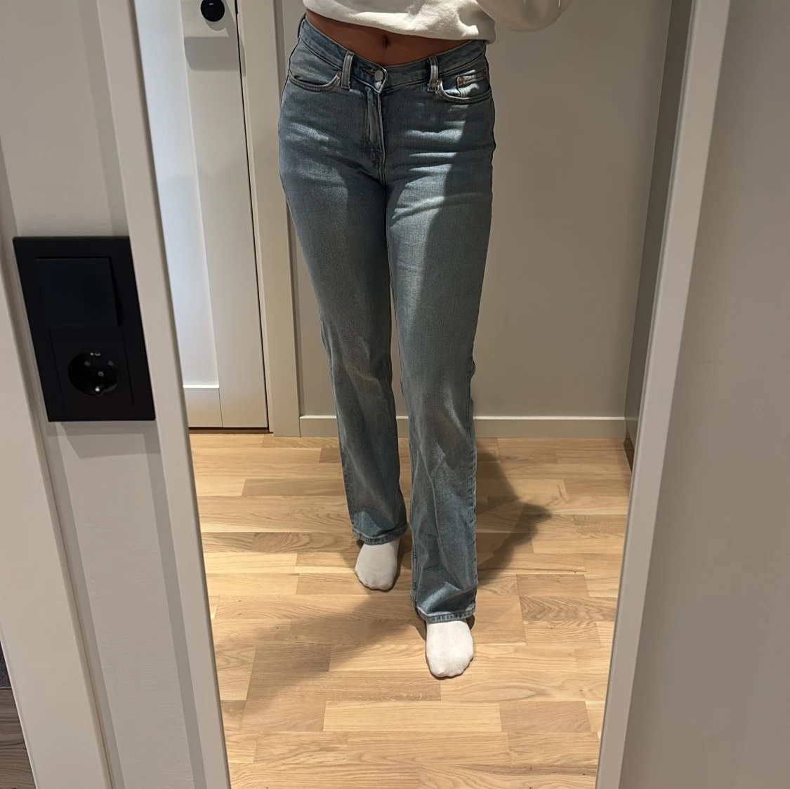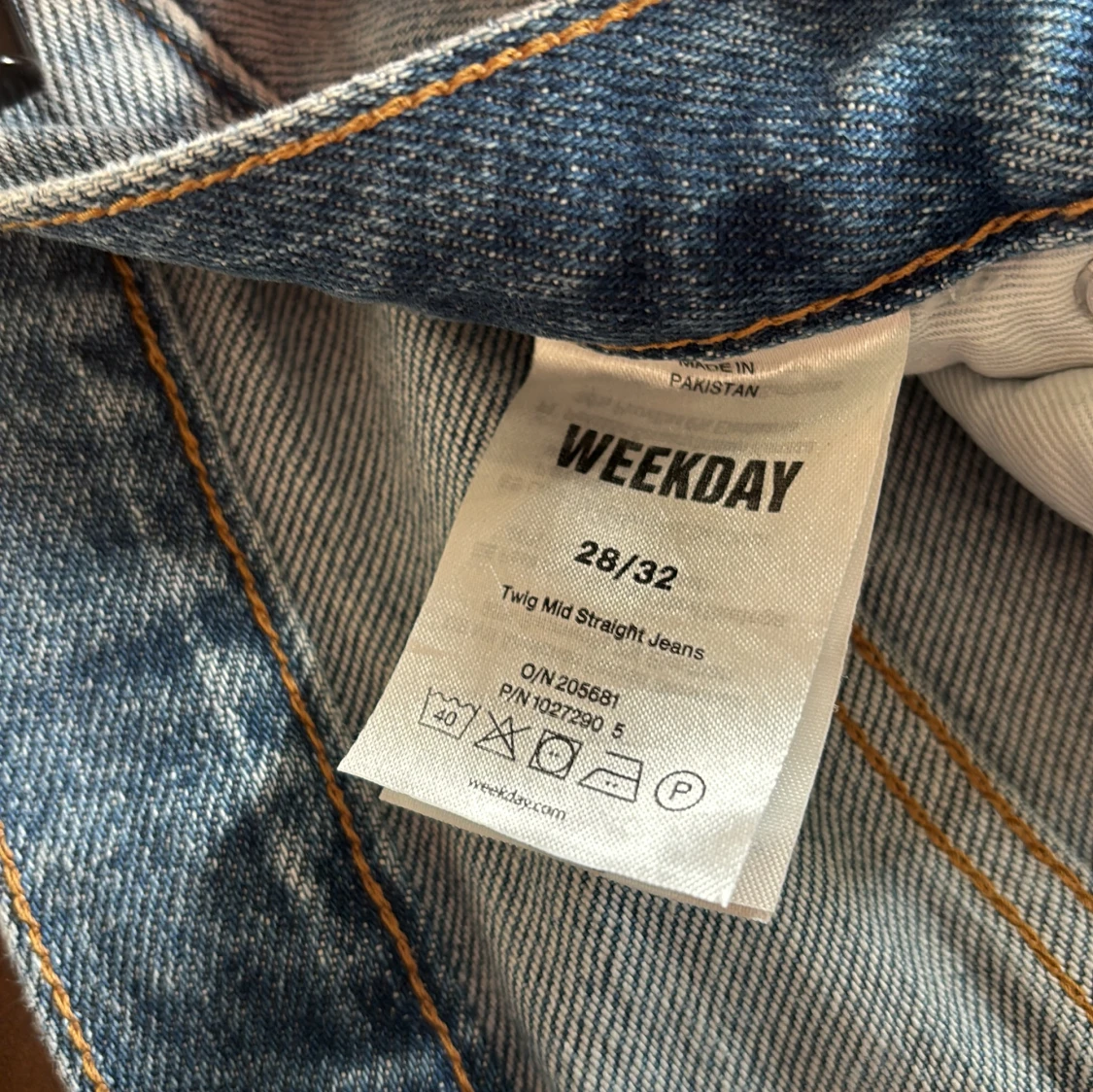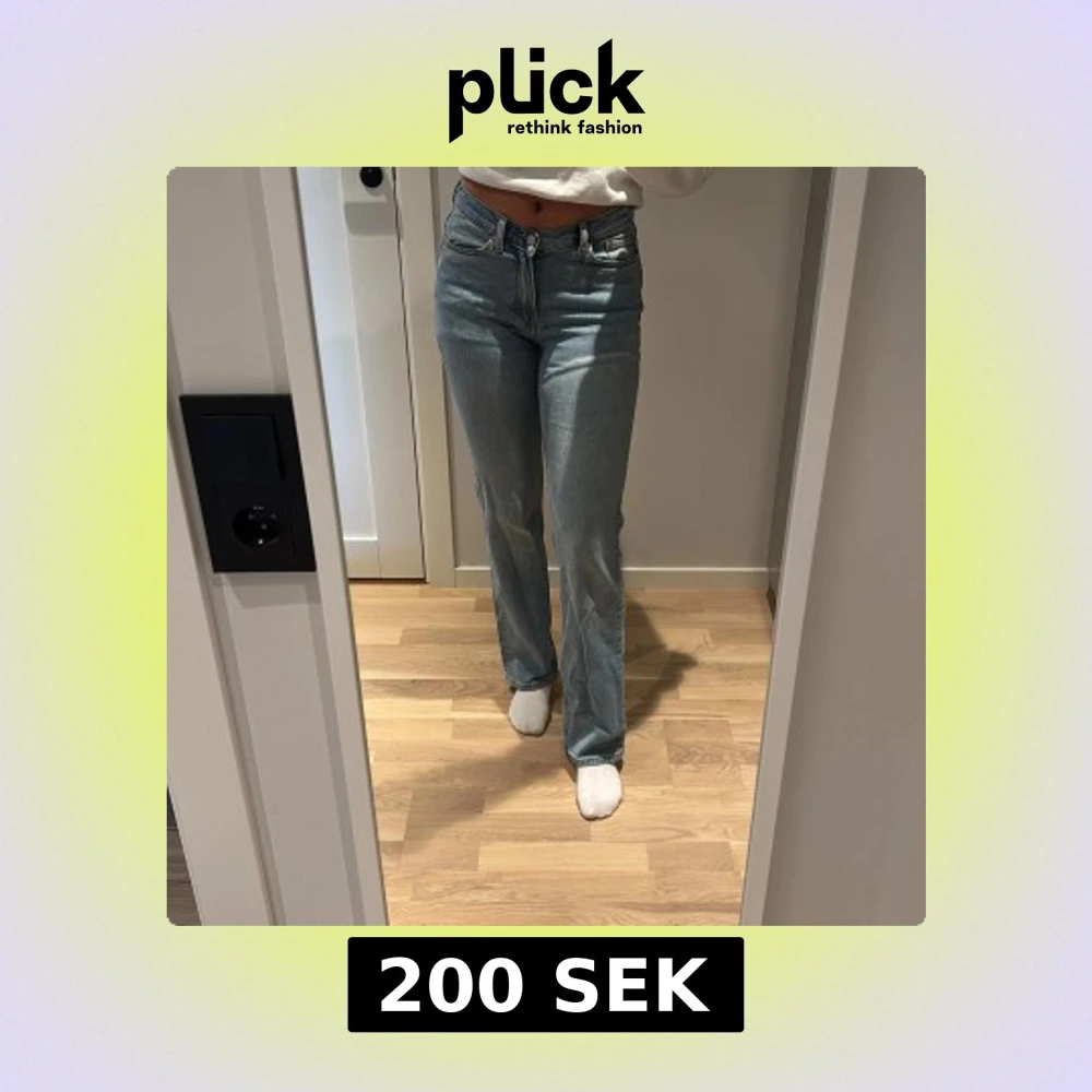 Snygga ljusblå jeans från Weekday i modellen Twig Mid Straight. Klassisk femficksdesign, raka ben och midwaist passform. Jeansen är i mjuk bomull med en lätt tvättad look och subtila slitningar. Perfekta för en avslappnad och trendig stil.