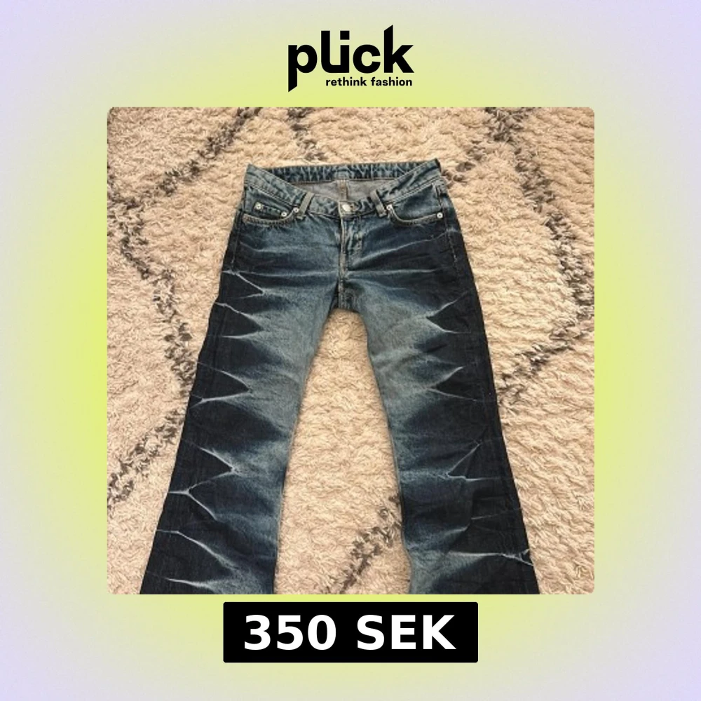 Snygga blå bootcut jeans från Weekday i modellen Nova Low Slim. Jeansen har låg midja, klassisk femficksdesign och coolt mönster.