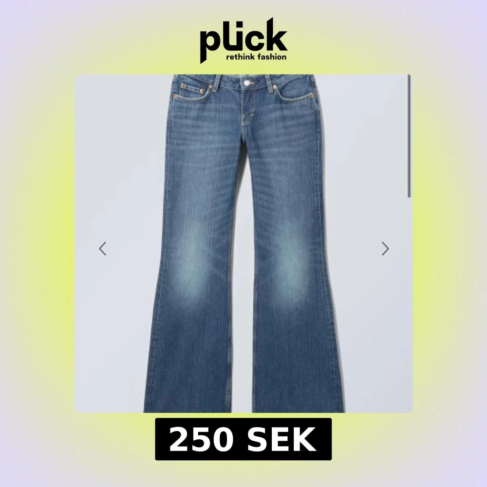 Snygga bootcut jeans från Weekday i modellen Nova Low Slim Bootcut. De är blå med ljusare tvättade partier och har klassisk femficksdesign. Jeansen har låg midja och är tillverkade i jeansmaterial med dragkedja och knapp framtill.
