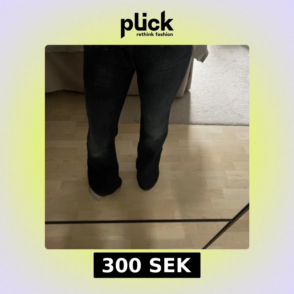 Säljer ett par mörkblå jeans från weekday med bootcut passform. Jeansen har klassisk femficksdesign, låg midja och snygga slitningar framtill. Materialet är robust denim som sitter skönt och ger en cool siluett. Perfekt för dig som gillar streetstyle och vill sticka ut.